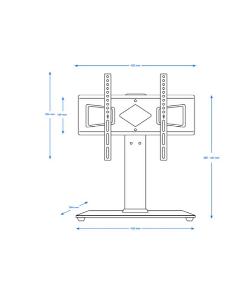 UNIVERSAL STEEL/GLASS TV TABLE STAND WITH +/- 25 DEGREE SWIVEL FUNCTION. MOUNTED ON THE VESA INTERFACE OF TV. MAXIMUM SUPPORTED VESA