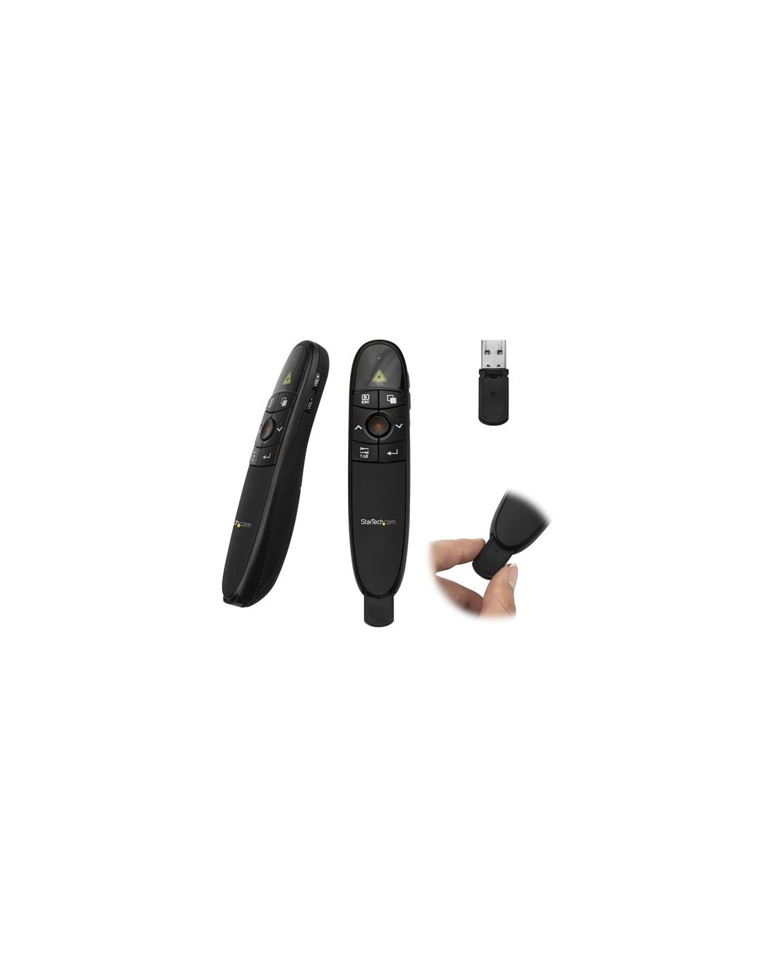 Il telecomando ha un design elegante ed ergonomico; viene fornito con le batterie necessarie e una custodia protettiva per la massima portabilità. Quando non viene utilizzato, il ricevitore wireless può essere riposto nel telecomando per presentazioni. Il ricevitore USB è supportato da driver HID per usi generici, che consentono di utilizzarlo con qualsiasi computer Mac o Windows.