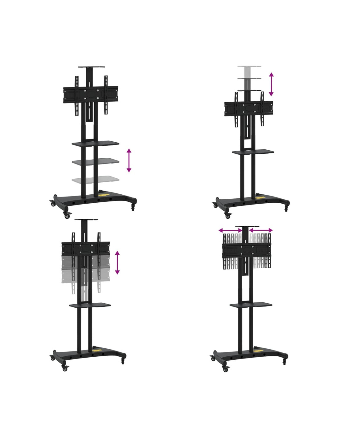 Questo supporto TV su ruote offre una soluzione pratica e poco ingombrante per montare la vostra TV o i monitor!