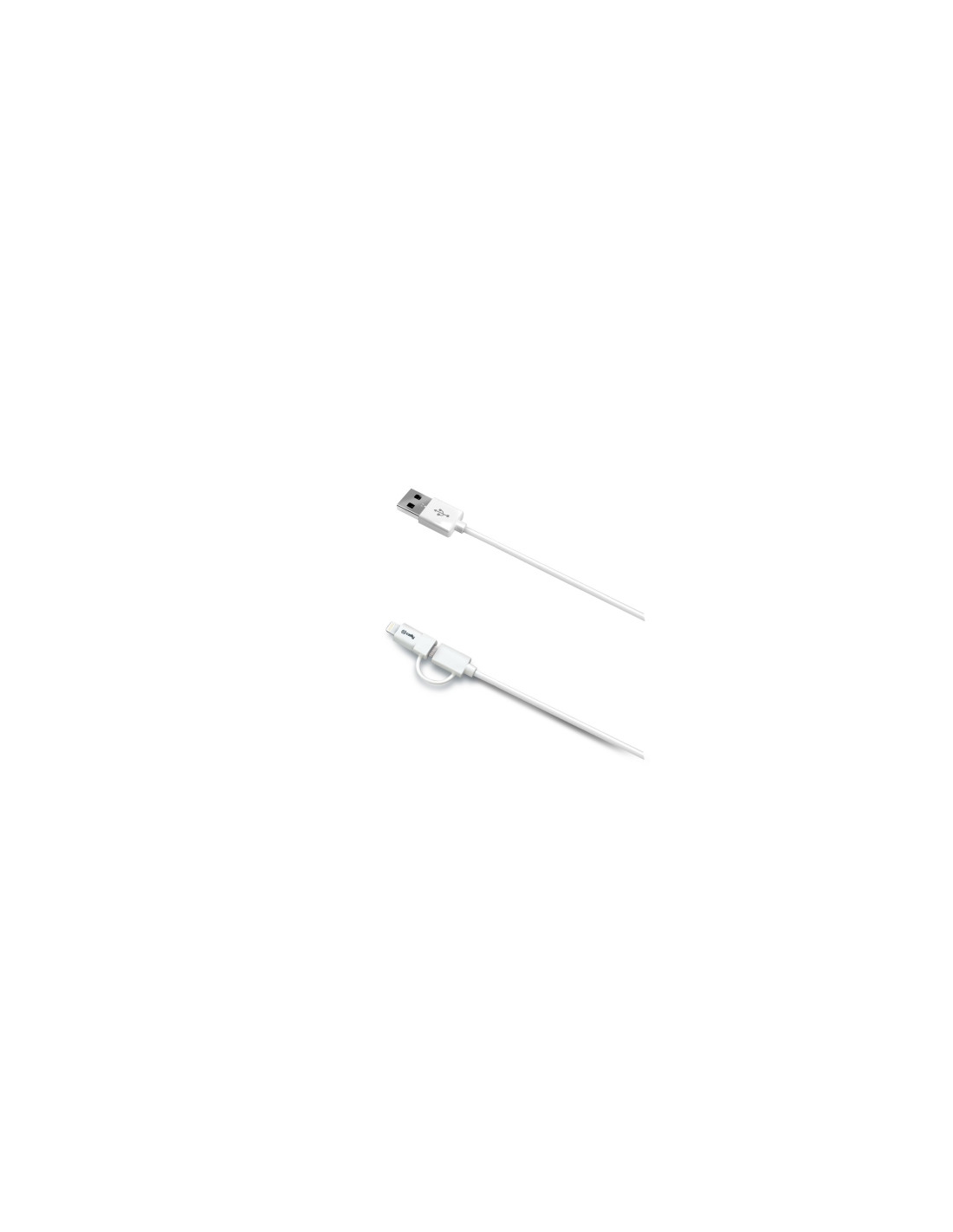 Celly USBML. Lunghezza cavo: 1 m. Connettore 1: USB A, Connettore 2: Micro-USB B/Lightning, Genere di connettore: Maschio/Maschio, Colore del prodotto: Bianco