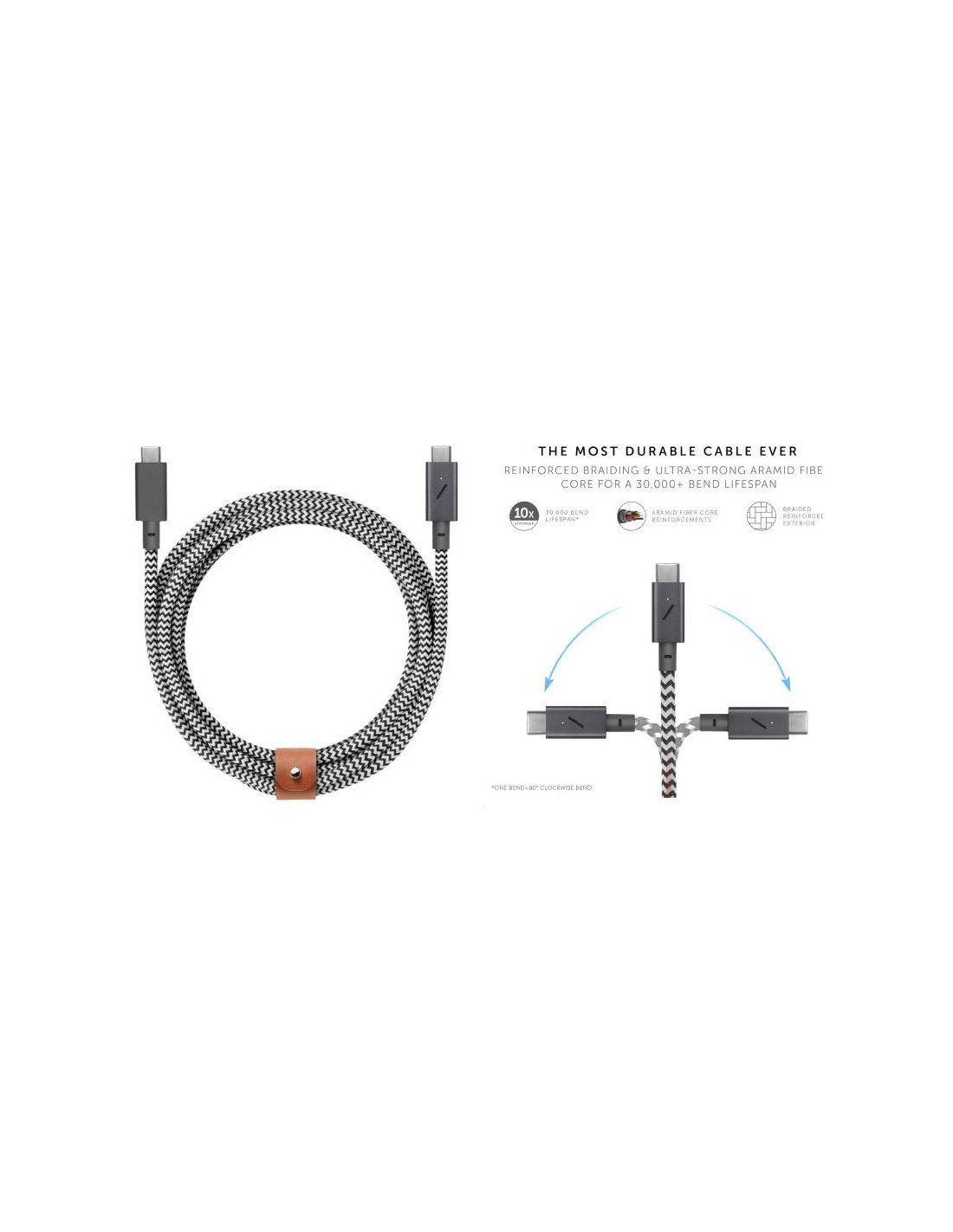 CAVO BELT PRO CON FIBBIA 2.4M-240W USB-C/USB-C- ZEBRA