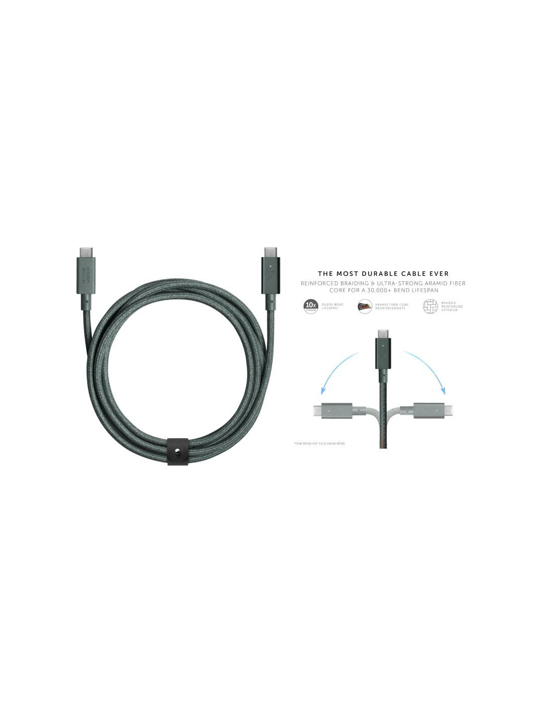 CAVO BELT PRO CON FIBBIA 2.4M-240W USB-C/USB-C- SLATE GREEN