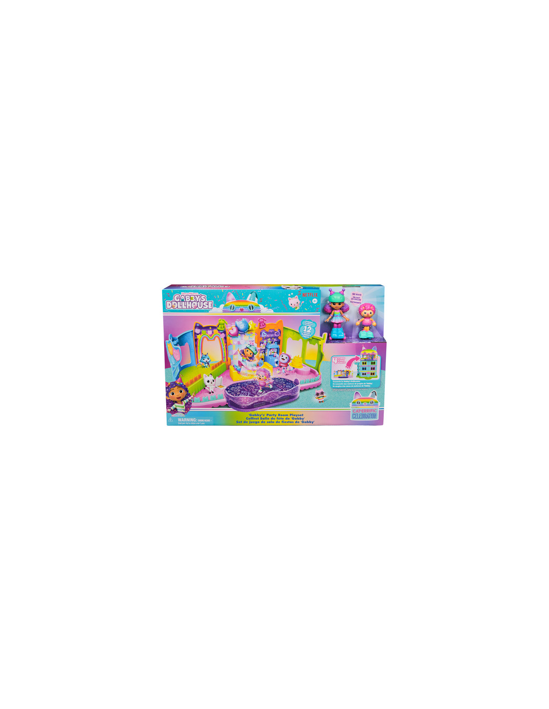 Entra nel magico universo della serie TV La casa delle bambole di Gabby con L’attico a tema feste della Casa delle Bambole di Gabby. Questo set include i personaggi giocattolo di Gabby pattinatrice da 10 cm e la versione pattinatore di Marty, il gatto della festa, con pattini funzionanti. Potrai giocare singolamermente con l’Attico oppure inserirlo in alto al playset della Casa della Casa delle Bambole in modo che diventi proprio un attico funzionante. I giocattoli, i peluche, i personaggi e i set di gioco della collezione Gabby's Dollhouse sono educativi per bambini e bambine, nonché ottimi regali per bambini dai 3 anni in su, in quanto aiutano a espandere la loro immaginazione attraverso un gioco di finzione entusiasmante e creativo