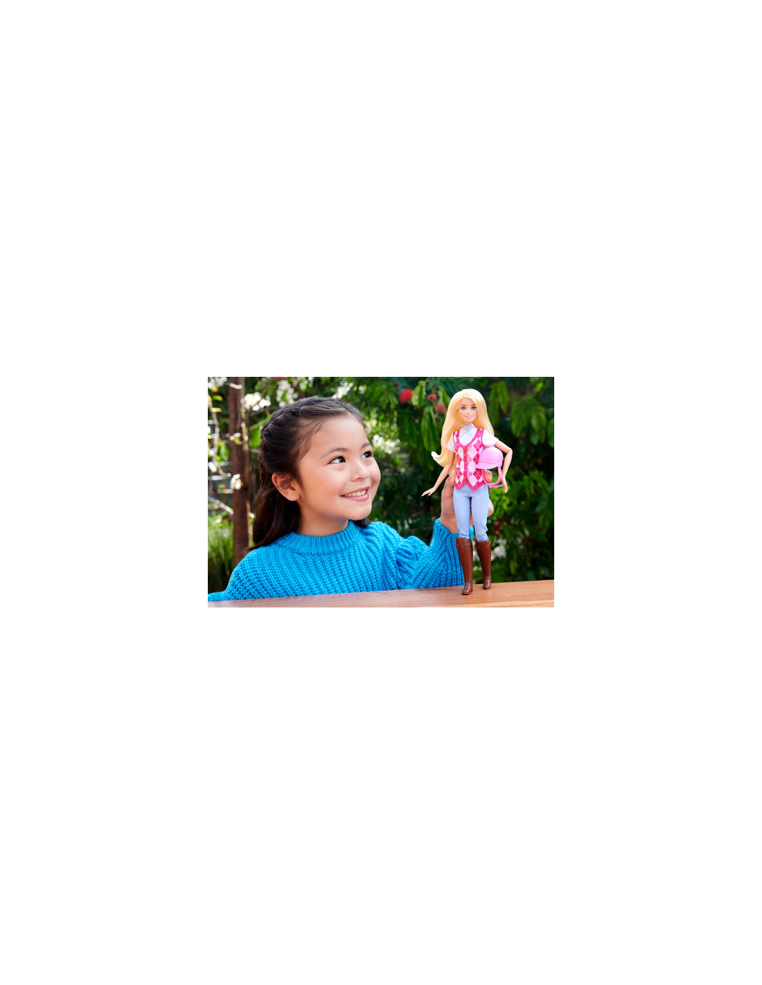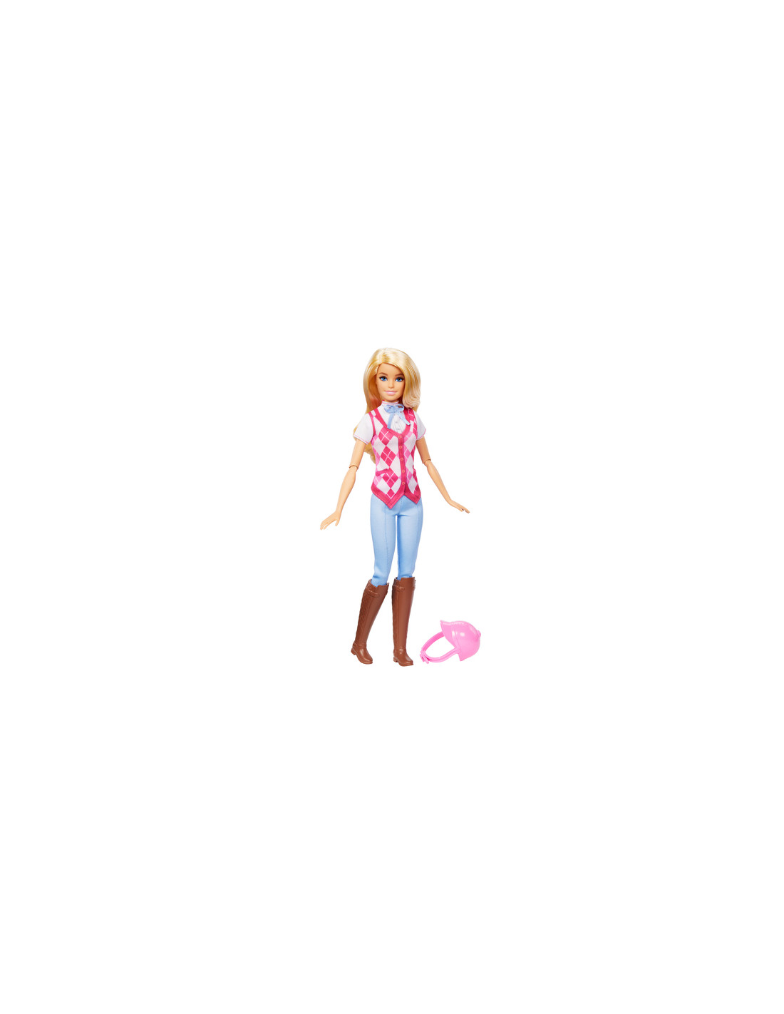 Barbie 'Malibu' è pronta per avventure a cavallo! Con un elegante outfit da equitazione, è ispirata al personaggio della serie Netflix, Barbie Mysteries: The Great Horse Chase. Questa bambola alla moda indossa una camicia e un gilet rimovibili, pantaloni, stivali e caschetto. Inoltre, ha articolazioni che si piegano all'altezza di gomiti, polsi e ginocchia per un gioco di cavalcate realistico! La bambola non può reggersi in piedi da sola. Colori e decorazioni possono variare.