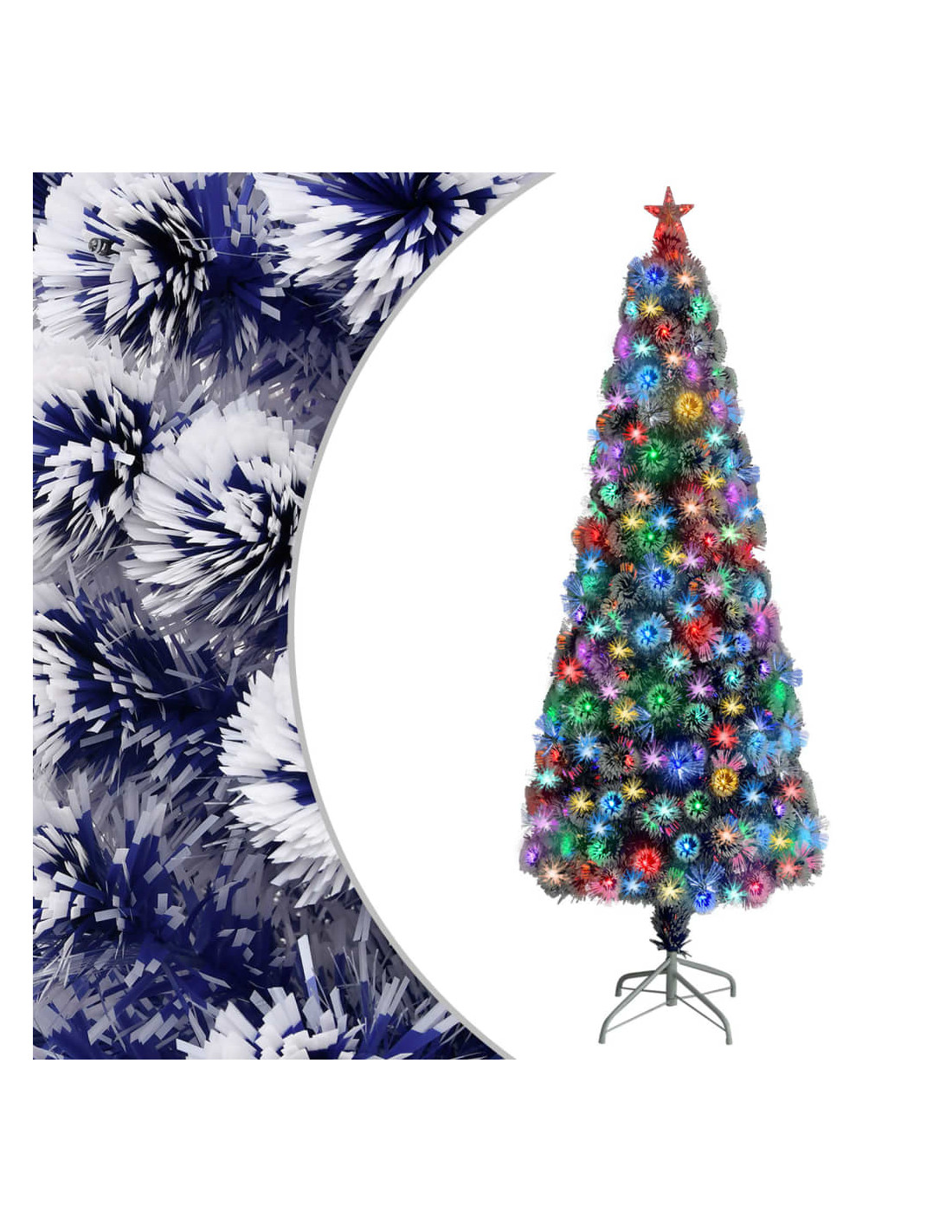 Realizzato in PVC e fibra ottica, questo albero di Natale artificiale è molto realistico nella forma e nell'aspetto. L'albero di Natale è dotato di 2 tipi di illuminazione: a LED e in fibra ottica. E la luce LED a forma di stella sulla cima dell'albero crea l'atmosfera giusta per le feste. Il supporto incluso fornisce al vostro albero una stabilità ottimale. Inoltre, l'albero di Natale può essere riutilizzato ogni anno, essendo una scelta molto economica rispetto a un vero albero.