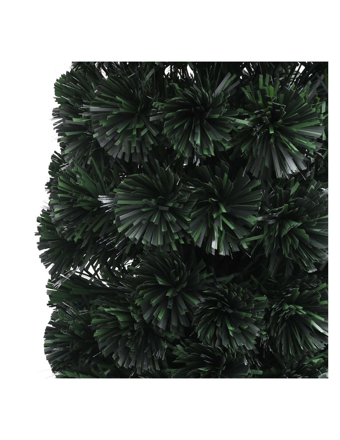 L'albero di Natale è dotato di illuminazione a fibre ottiche. Una volta collegato, si illumina in cinque colori diversi (rosso, giallo, verde, blu e viola) per un effetto abbagliante e festoso. La tecnologia a fibra ottica è molto efficiente dal punto di vista energetico, il che si traduce in bassi consumi. Il supporto incluso fornisce al vostro albero una stabilità ottimale. L'albero di Natale può essere riutilizzato tutti gli anni, il che lo rende una scelta molto economica rispetto a un albero vero.