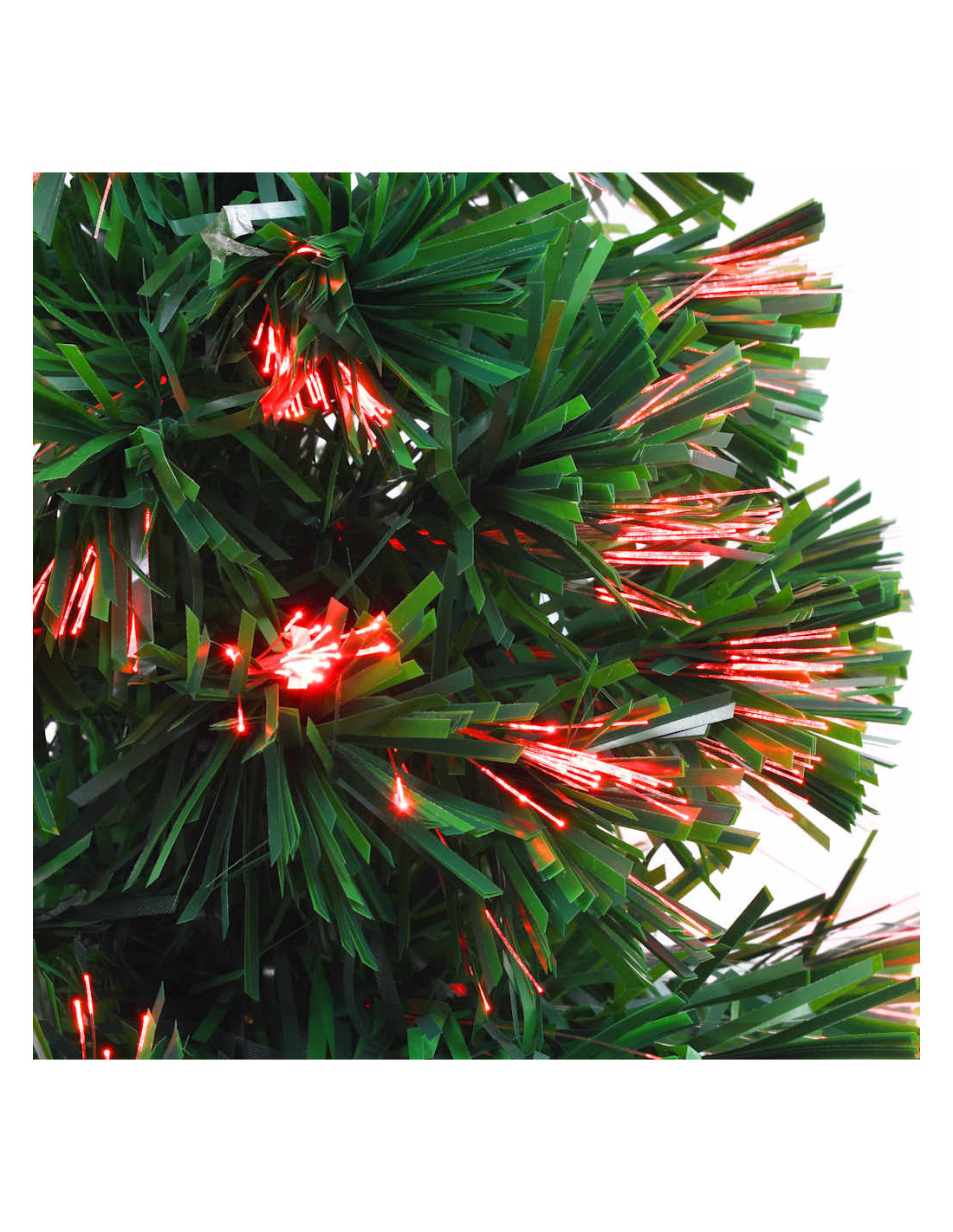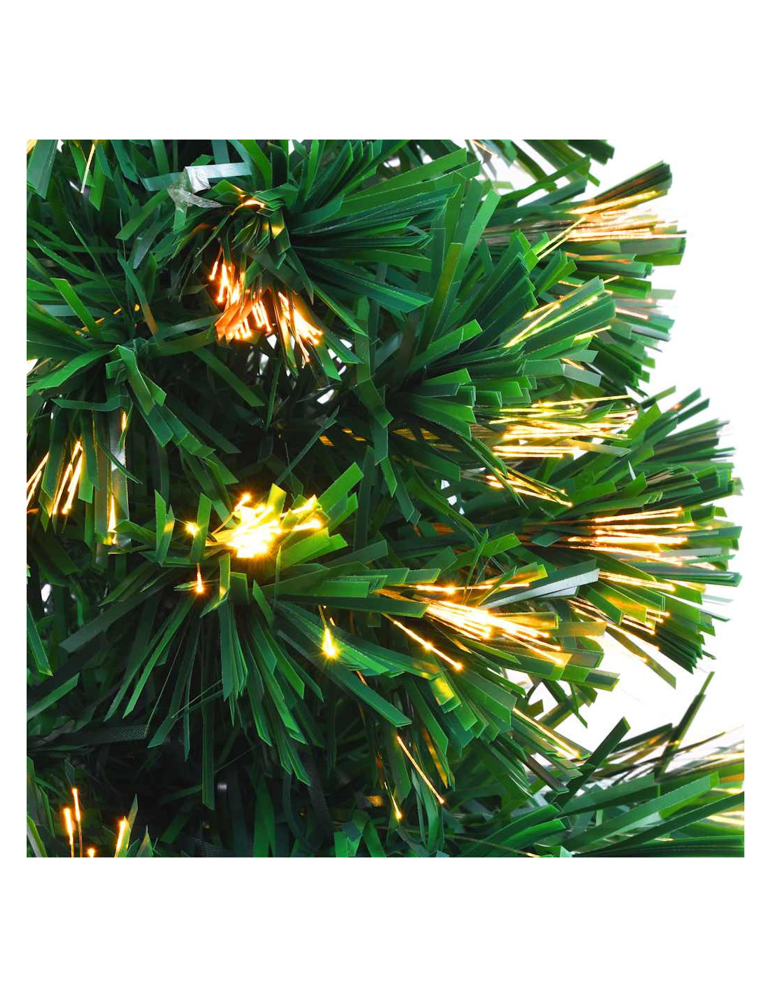 Grazie all'uso della moderna fibra ottica, questo albero di Natale artificiale si illumina in cinque colori diversi e in continua evoluzione (rosso, giallo, verde, blu e viola) per un effetto abbagliante e festoso. La tecnologia della fibra ottica ha alta efficienza energetica, che si traduce in un basso consumo. L'albero di Natale può essere utilizzato ogni anno, rendendolo una scelta molto economica rispetto ad un vero albero. Questo albero è adatto per l'uso interno. L'assemblaggio è facile.