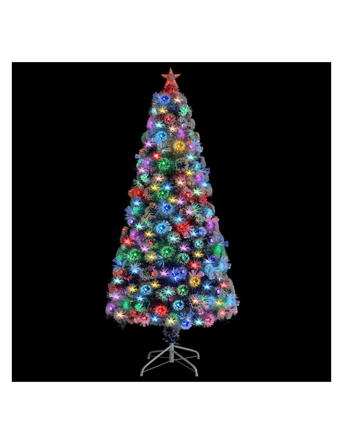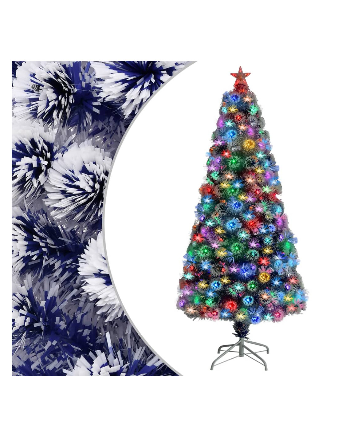 Realizzato in PVC e fibra ottica, questo albero di Natale artificiale è molto realistico nella forma e nell'aspetto. L'albero di Natale è dotato di 2 tipi di illuminazione: a LED e in fibra ottica. E la luce LED a forma di stella sulla cima dell'albero crea l'atmosfera giusta per le feste. Il supporto incluso fornisce al vostro albero una stabilità ottimale. Inoltre, l'albero di Natale può essere riutilizzato ogni anno, essendo una scelta molto economica rispetto a un vero albero.