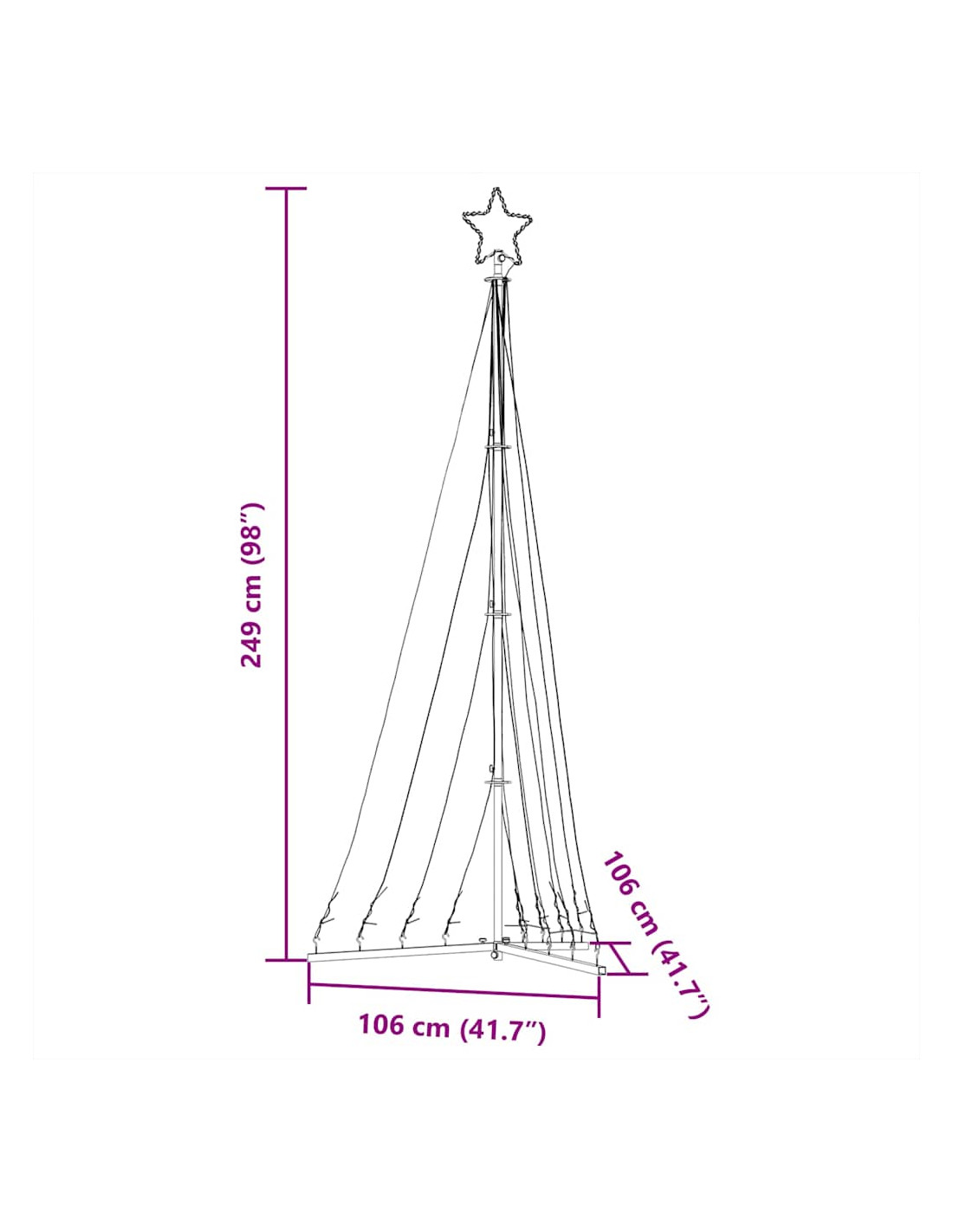 - Facile installazione e conservazione: il kit di montaggio completo include un supporto staccabile, aste di collegamento, ganci e picchetti di terra, consentendo un'installazione facile e veloce di questo albero di Natale a LED. È pieghevole per una comoda conservazione e riutilizzo, occupando uno spazio minimo.