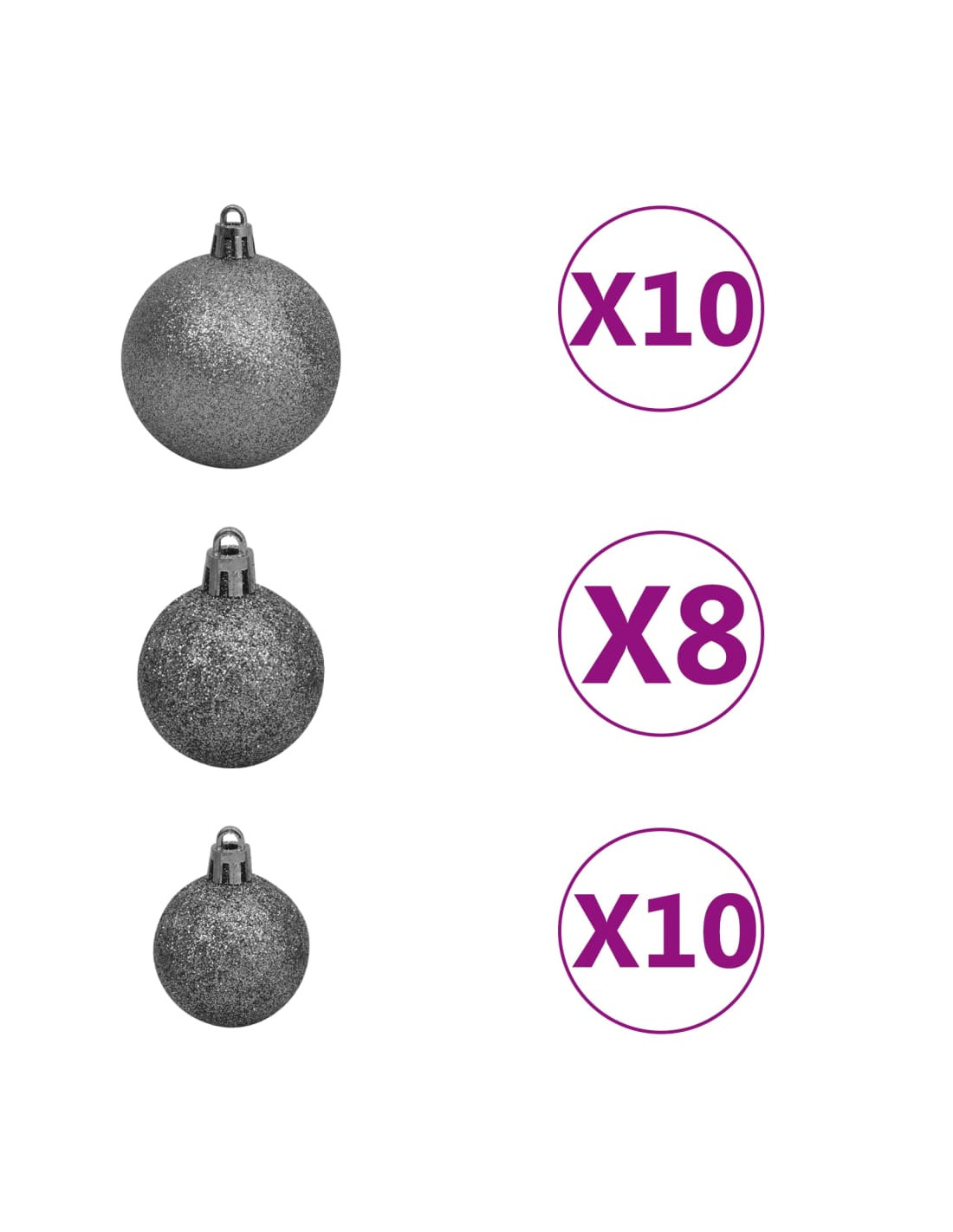Questo albero di Natale, con un'altezza di 240 cm, sarà l'ideale per creare un'atmosfera natalizia unica in casa, in giardino, in ufficio o in negozio! Dotato di luci a LED ad alta efficienza energetica, si illumina magnificamente e crea un'accogliente atmosfera natalizia. Decorato con il bel puntale e le palline, questo albero di Natale attirerà l'attenzione nella vostra casa.