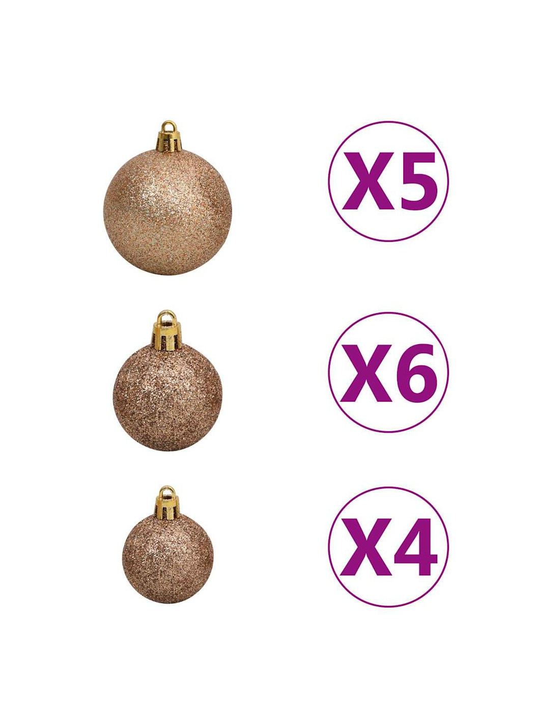 - Colore delle palline: oro rosa lucido, oro rosa opaco e oro rosa glitterato