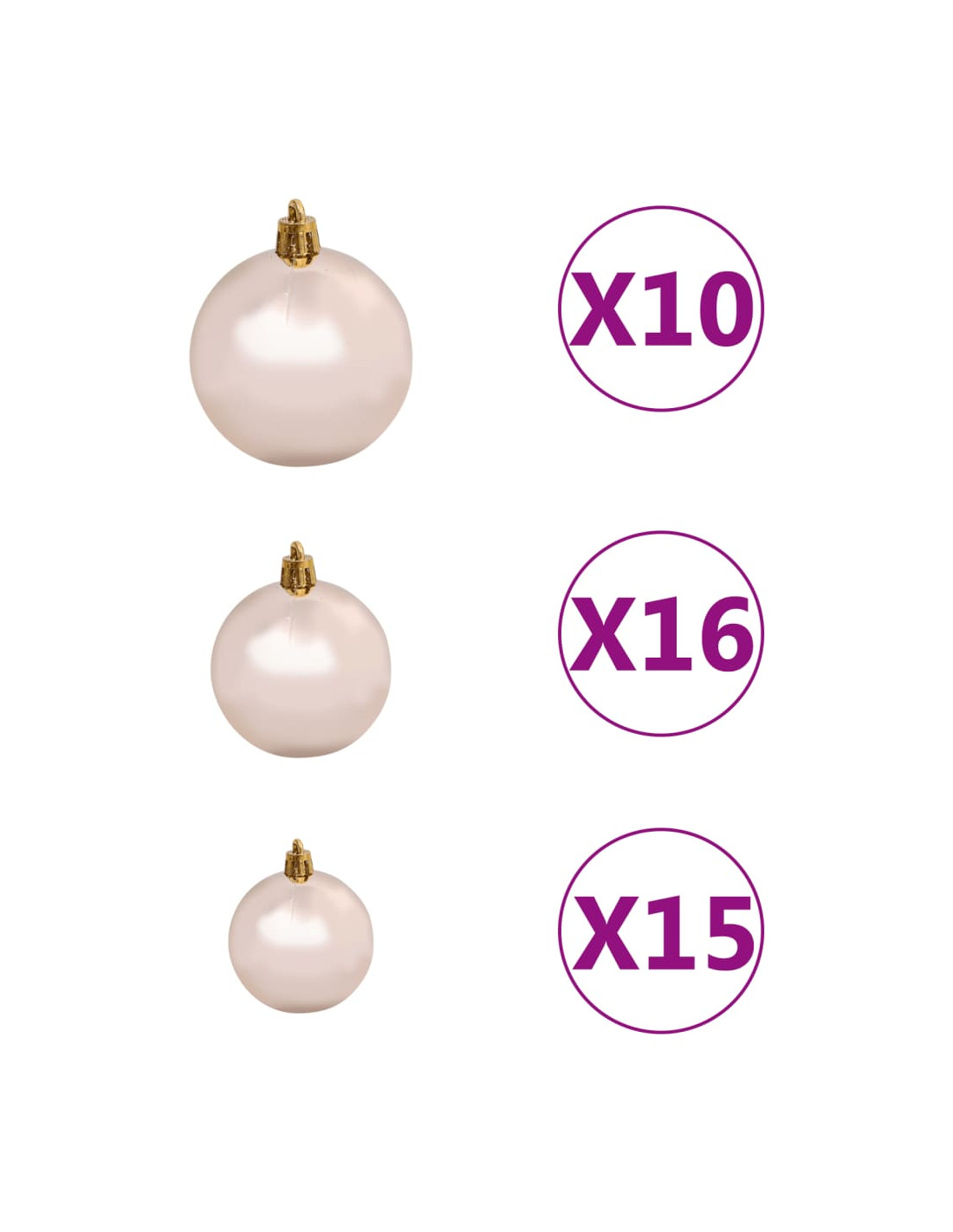 - Colore delle palline: oro rosa lucido, oro rosa opaco e oro rosa glitterato