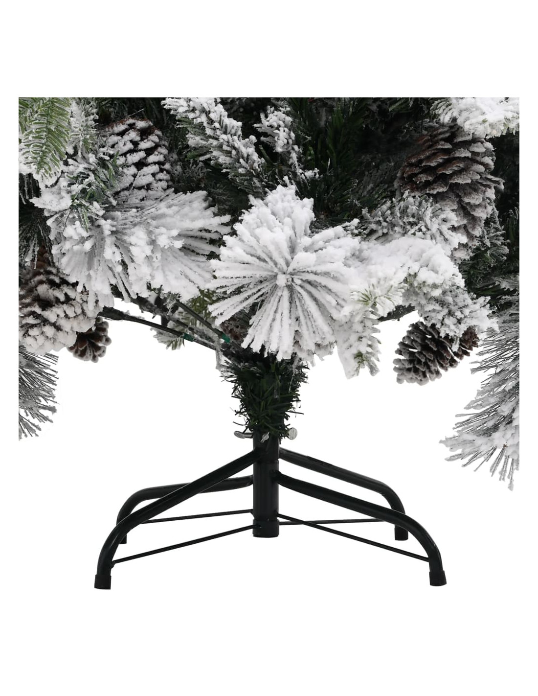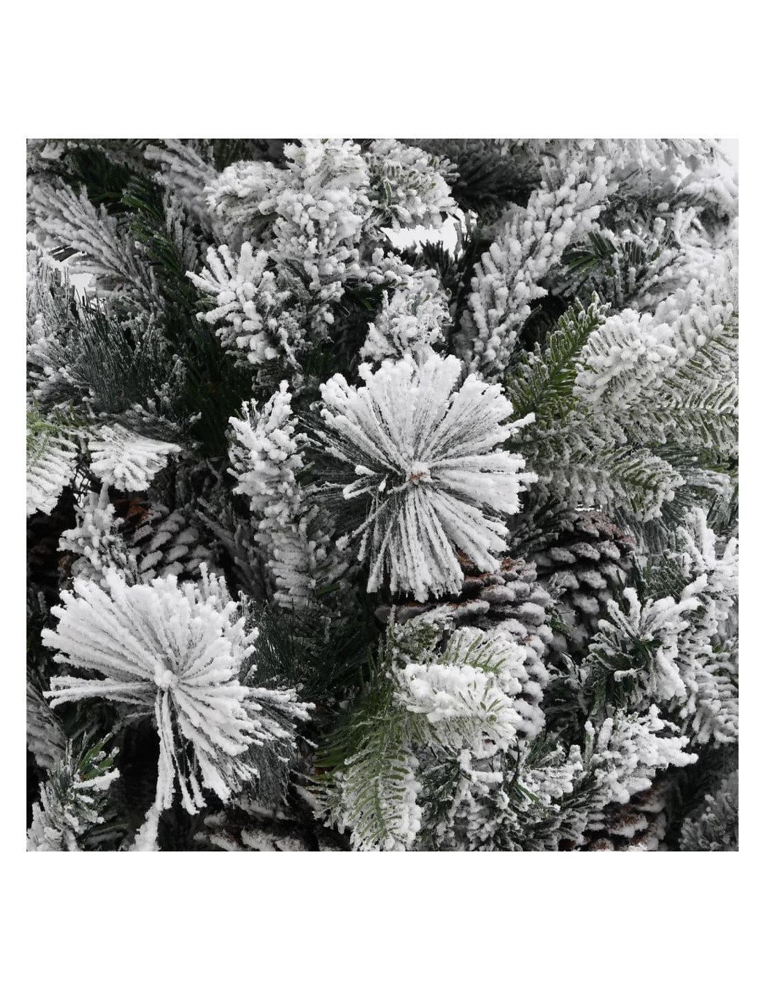 Questo bellissimo albero di Natale ha i rami in PVC e PE. I rami degli alberi sono fissati al palo centrale mediante un sistema di cerniere. Grazie alle cerniere, i rami si sposteranno automaticamente nella giusta posizione. Inoltre, le pigne e la neve bianca floccata sugli aghi aggiungono eleganza a questo albero di Natale. Il supporto in acciaio incluso fornisce al vostro albero una stabilità ottimale.