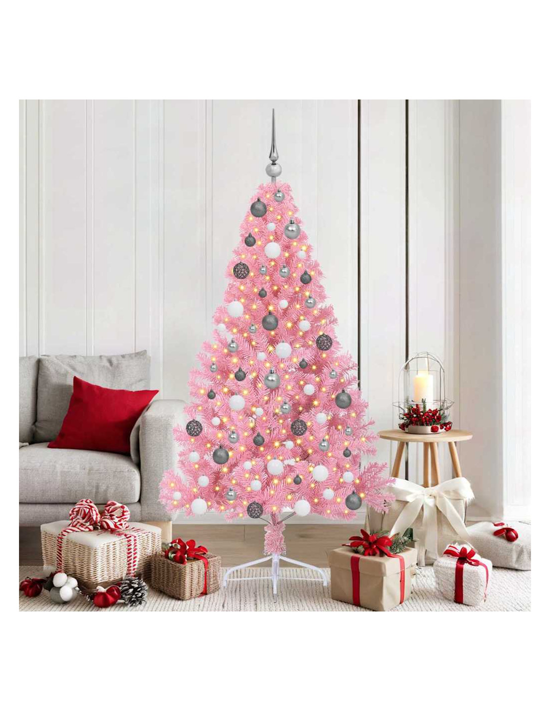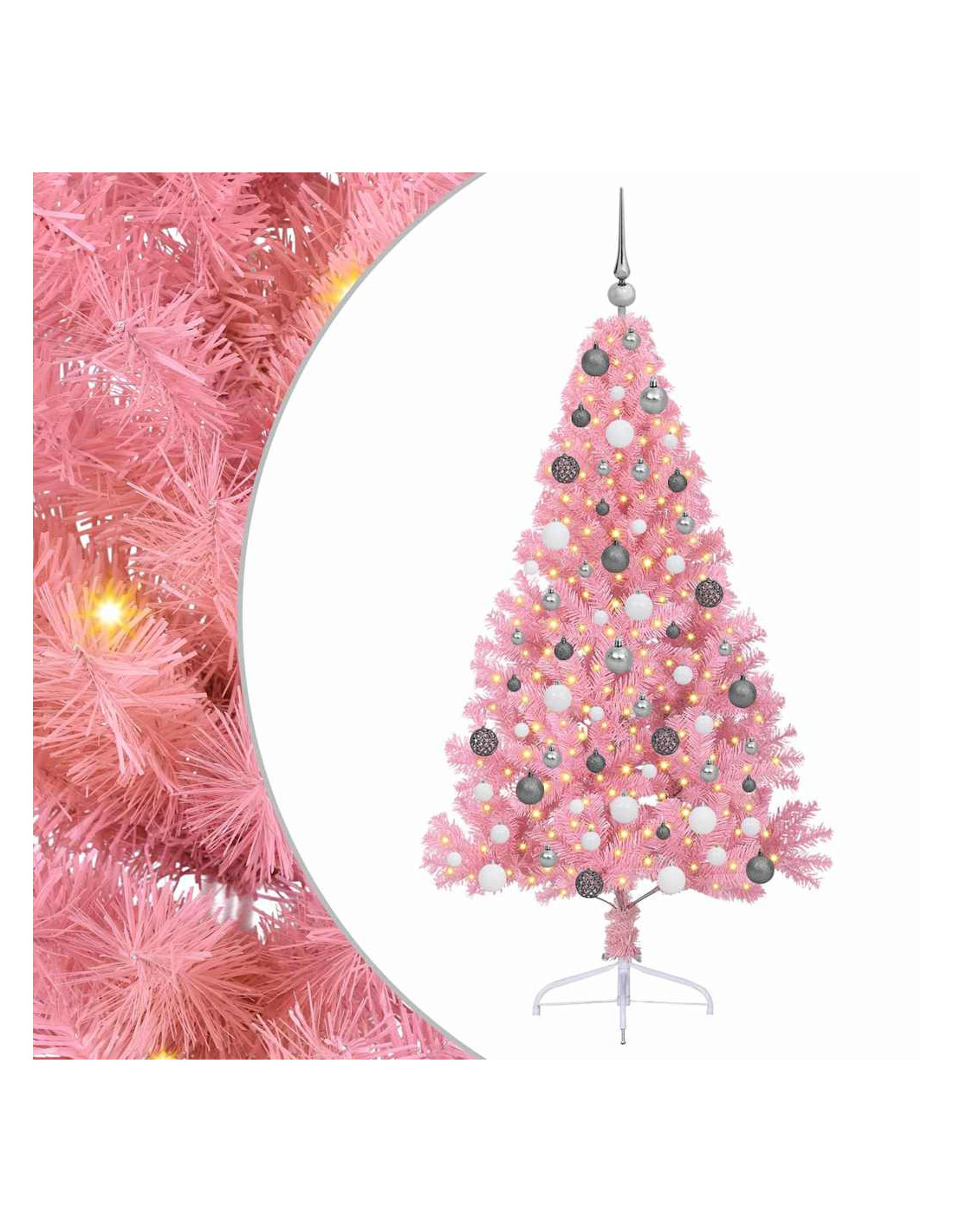 - Durabilità e Stile: Fatto in PVC, questo albero è resistente ai raggi UV e mantiene il suo look vivace durante le festività anche al sole. La solida struttura in acciaio lo rende stabile e la sua forma moderna si integra bene con il tuo arredamento.
