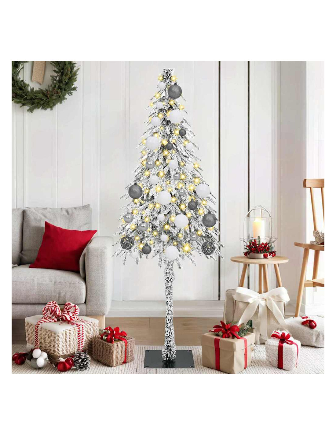 - Base in Metallo Robusta: Questo albero artificiale ha una base in metallo solida che lo mantiene stabile, così rimane dritto tutta la stagione. La base distribuisce il peso uniformemente, evitando che si inclini e mantenendo la sua forma.