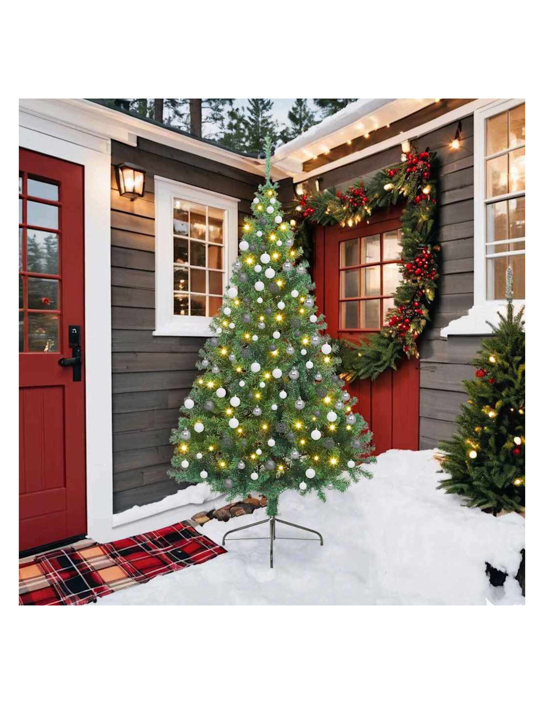 - Posizionamento Versatile: Ottimo sia per uso interno che esterno, questo albero può diventare il protagonista del tuo soggiorno o aggiungere un tocco speciale al tuo giardino o terrazza. Il suo look gradevole e il design pratico rendono facile inserirlo in vari spazi, aumentando lo spirito natalizio ovunque si trovi.