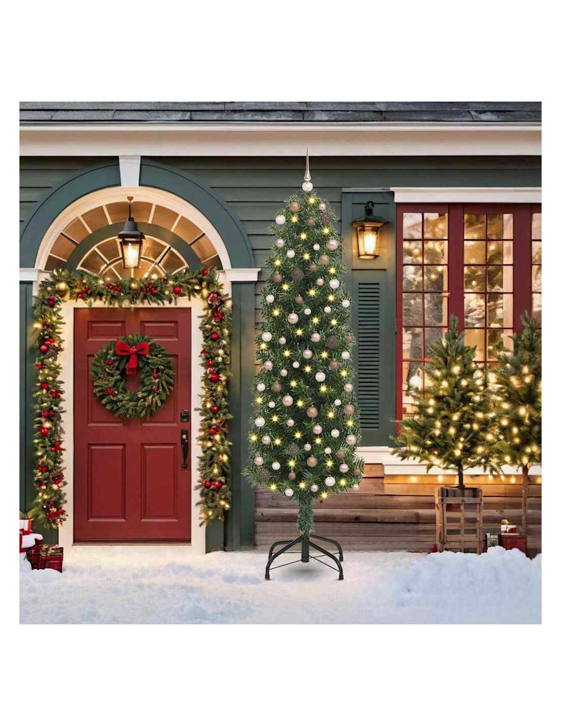 Questo Albero di Natale Slim Moderno aggiunge un tocco di classe a qualsiasi festa, sia in casa che in giardino. Con il suo design chic e semplice, è perfetto per gli amanti del decor moderno. Alto e snello, fa un bell'effetto ovunque, dai salotti ai giardini, ed è sicuramente il protagonista delle tue feste.