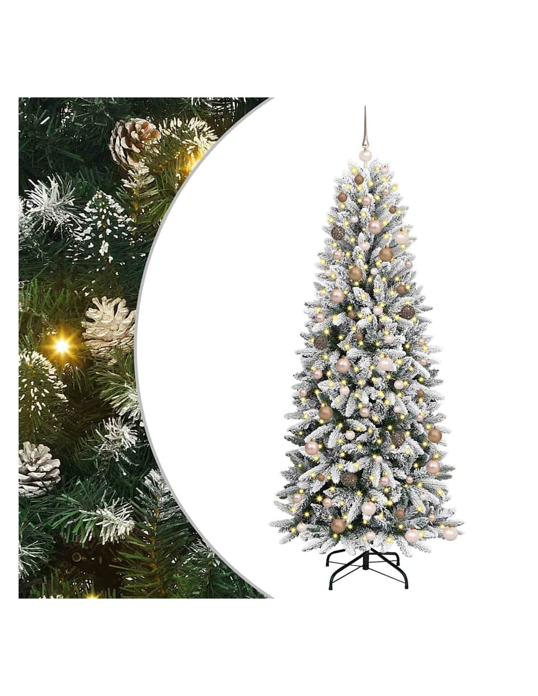 Questo Albero di Natale Artificiale è un mix perfetto tra tradizione e modernità, ideale per chi vuole festeggiare il Natale con stile senza complicazioni. È progettato per aggiungere un tocco di fascino sia dentro che fuori, con una forma conica bella e luci LED bianche calde che creano un'atmosfera magica. Il suo design contemporaneo e le sue caratteristiche pratiche lo fanno diventare la scelta ideale per dare un po'di eleganza e semplicità al tuo arredamento stagionale.