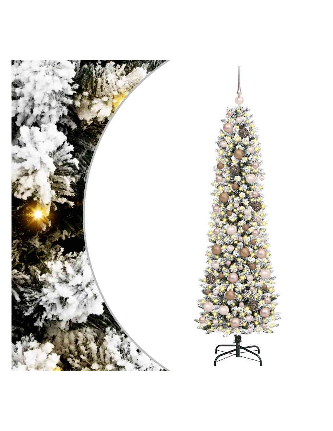 - Materiali di Alta Qualità: Fatte di PVC resistente e acciaio robusto, questo albero è progettato per durare e resistere all'usura. Inoltre, è resistente ai raggi UV, quindi va bene sia per interni che per esterni. Ogni ramo e ago imitano l'aspetto pieno di un albero vero, conferendogli un'atmosfera autentica.