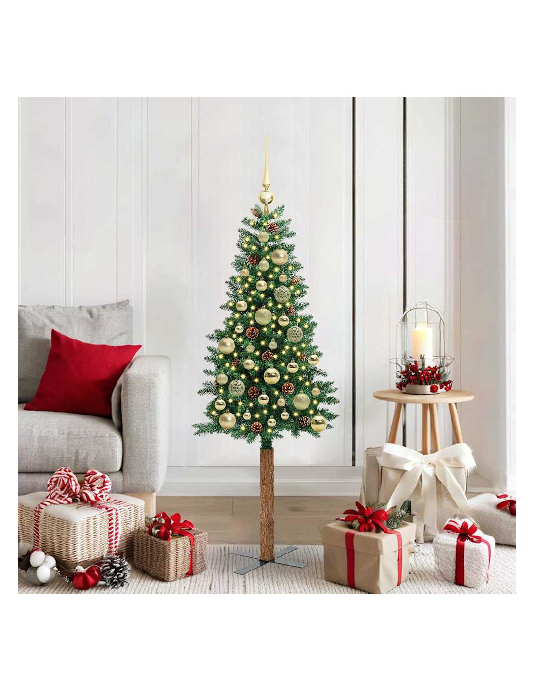 - Decorativo con pigne e palle ornamentali, punte dei rami realistiche, tronco in vero legno