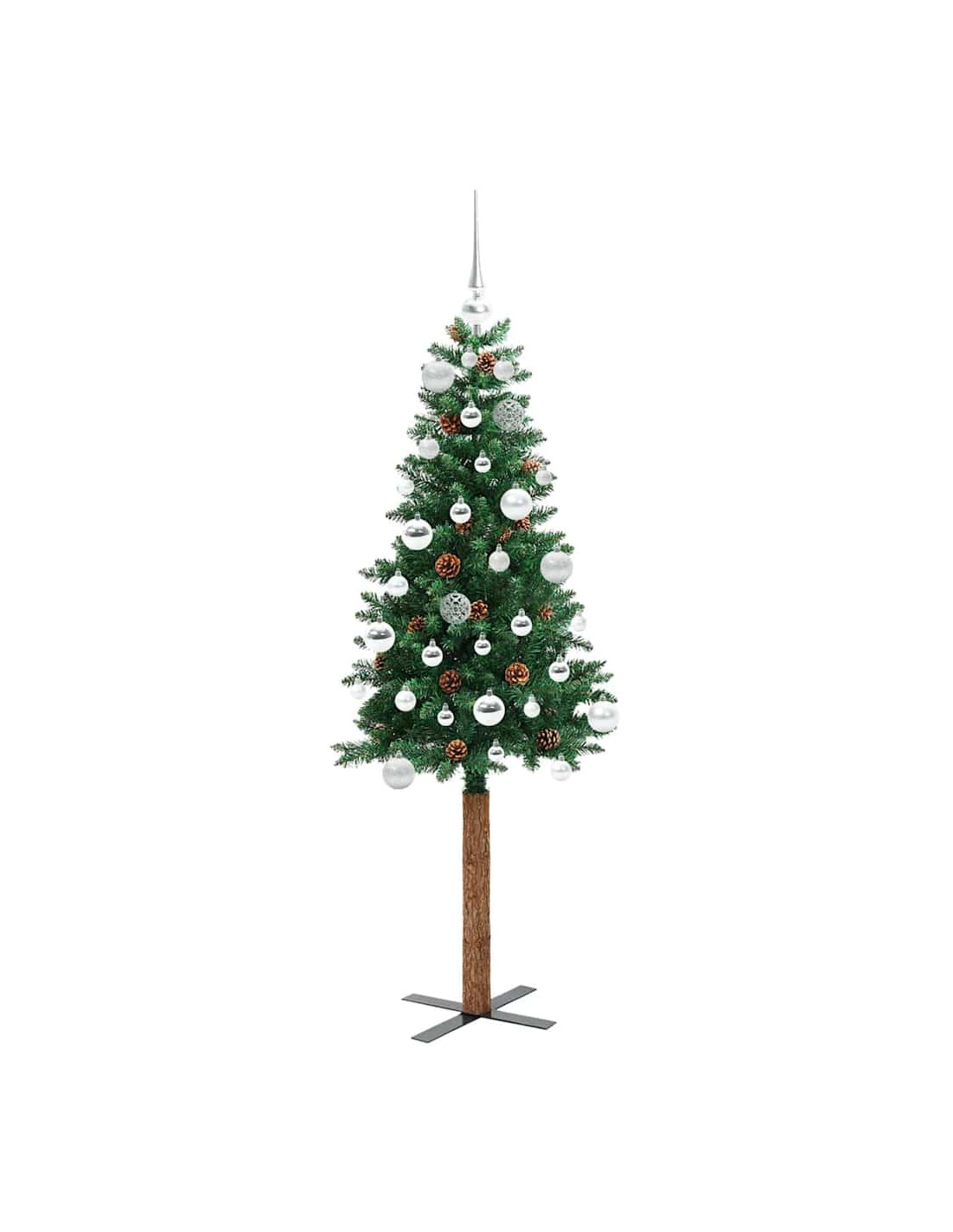 - Decorativo con pigne e palle ornamentali, punte dei rami realistiche, tronco in vero legno