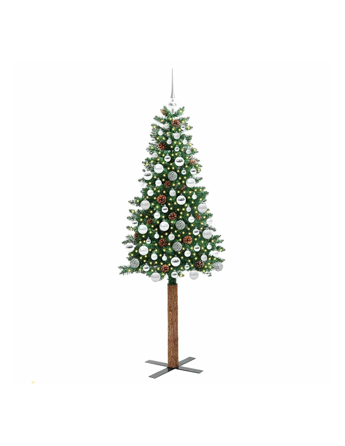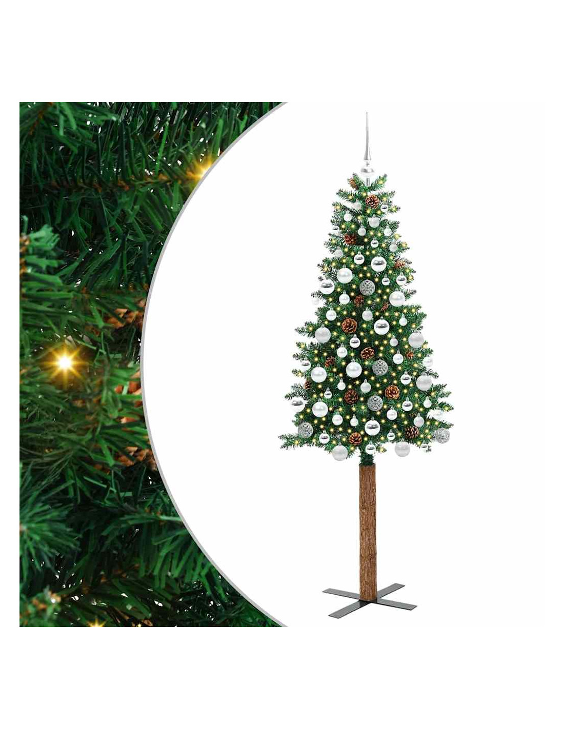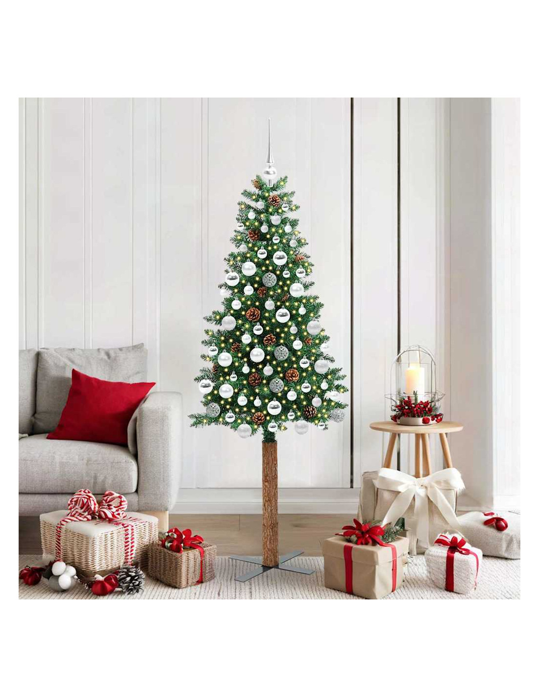 - Decorativo con pigne e palle ornamentali, punte dei rami realistiche, tronco in vero legno