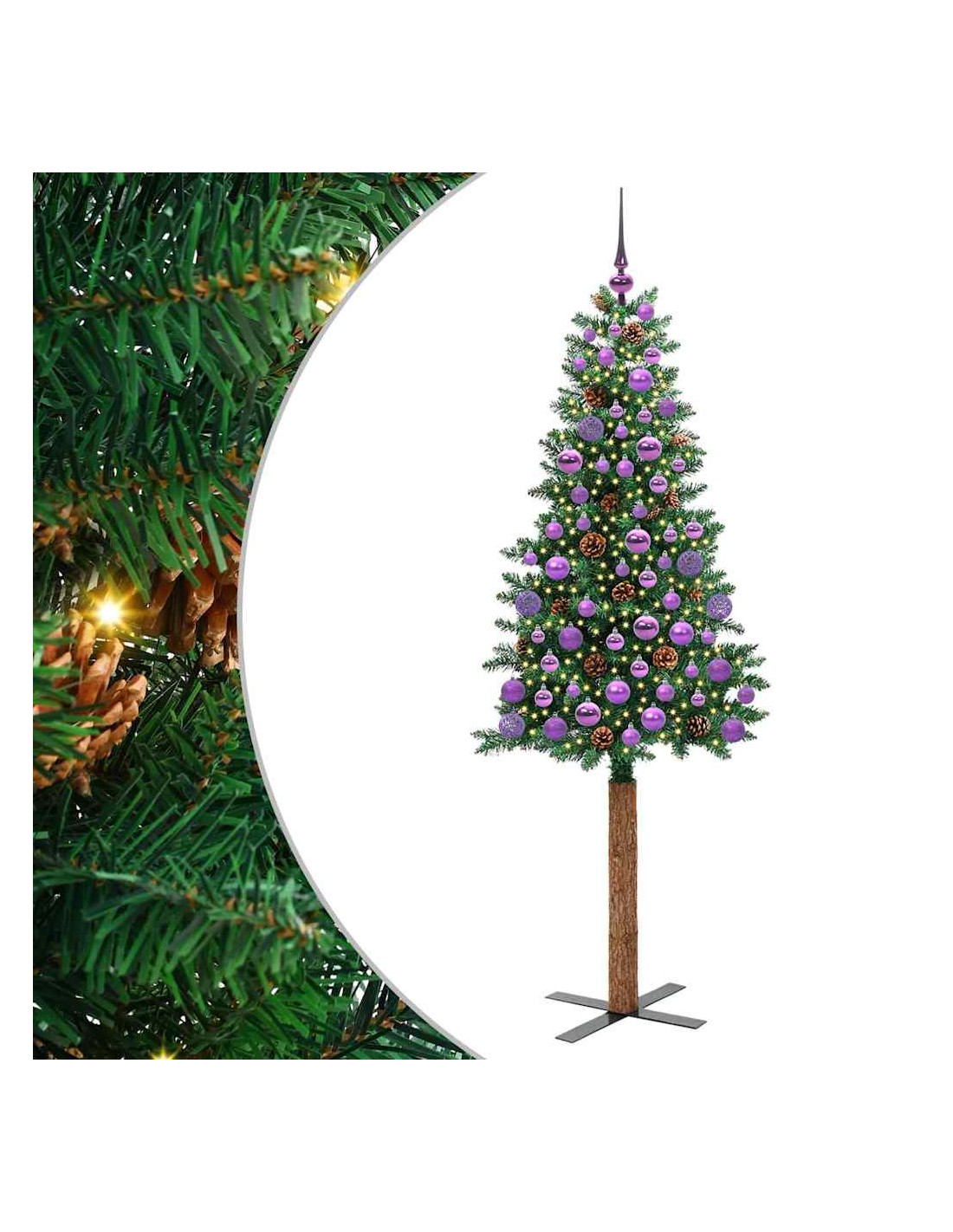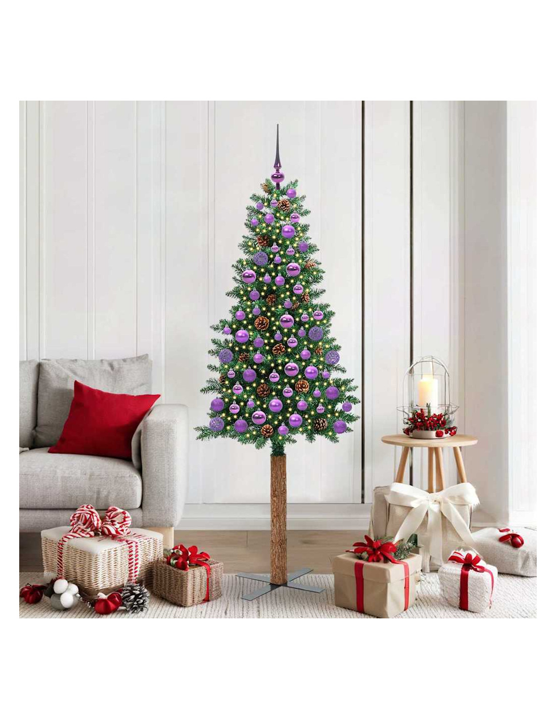 - Decorativo con pigne e palle ornamentali, punte dei rami realistiche, tronco in vero legno