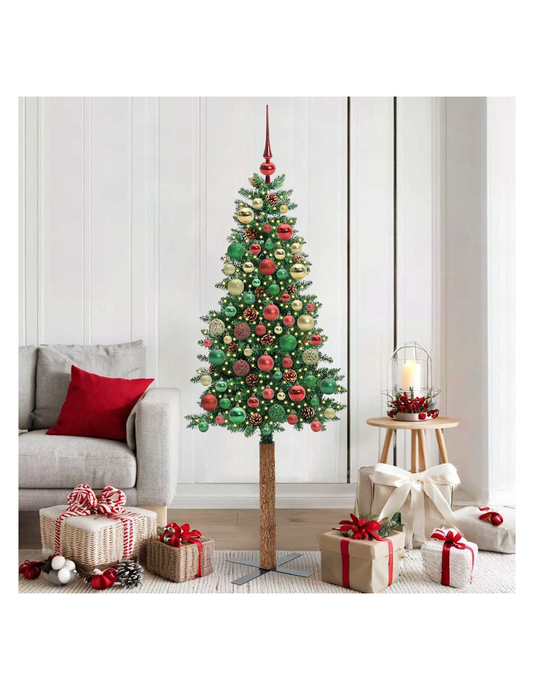 - Decorativo con pigne e palle ornamentali, punte dei rami realistiche, tronco in vero legno