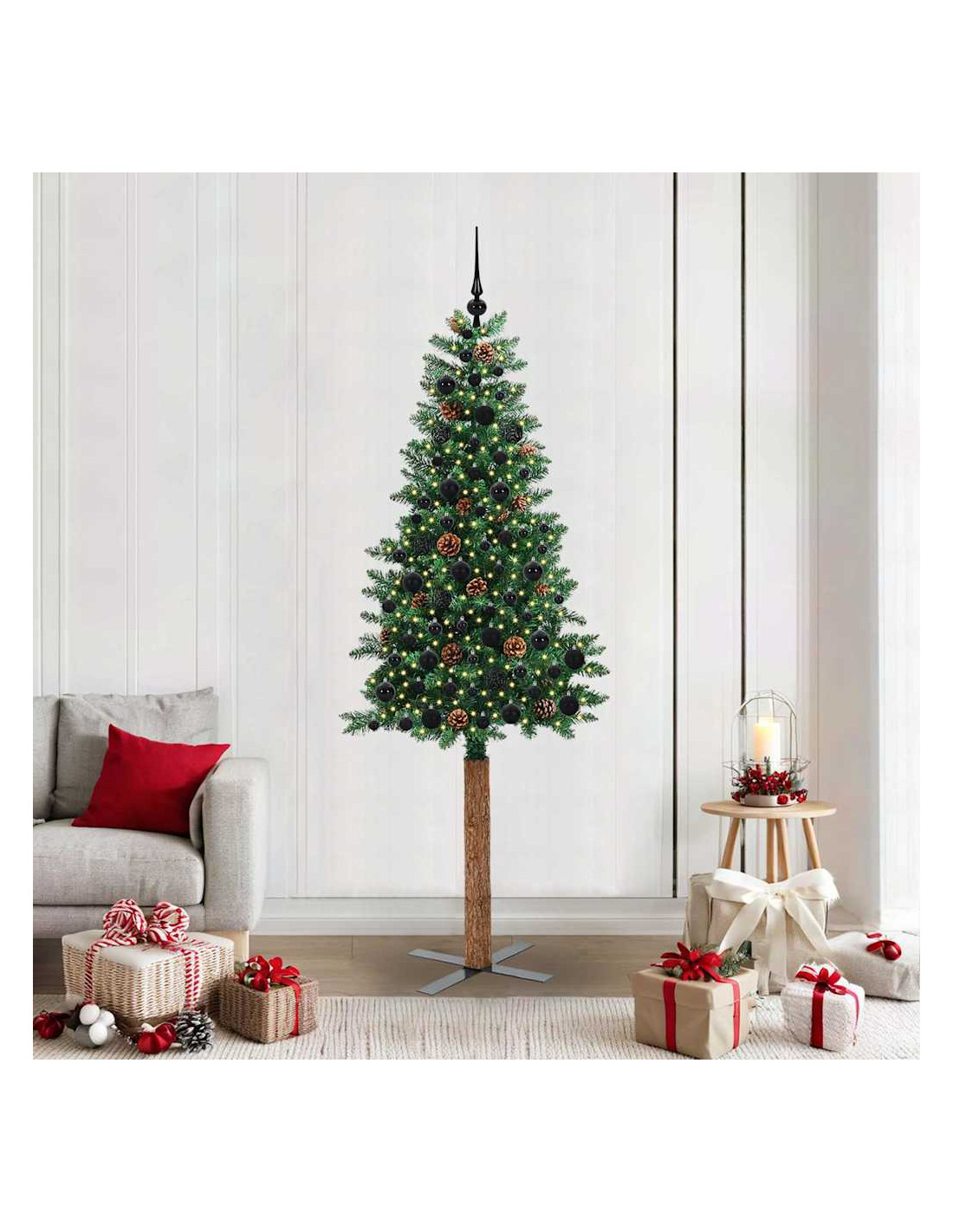 - Decorativo con pigne e palle ornamentali, punte dei rami realistiche, tronco in vero legno