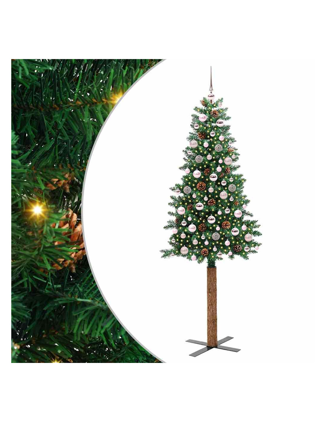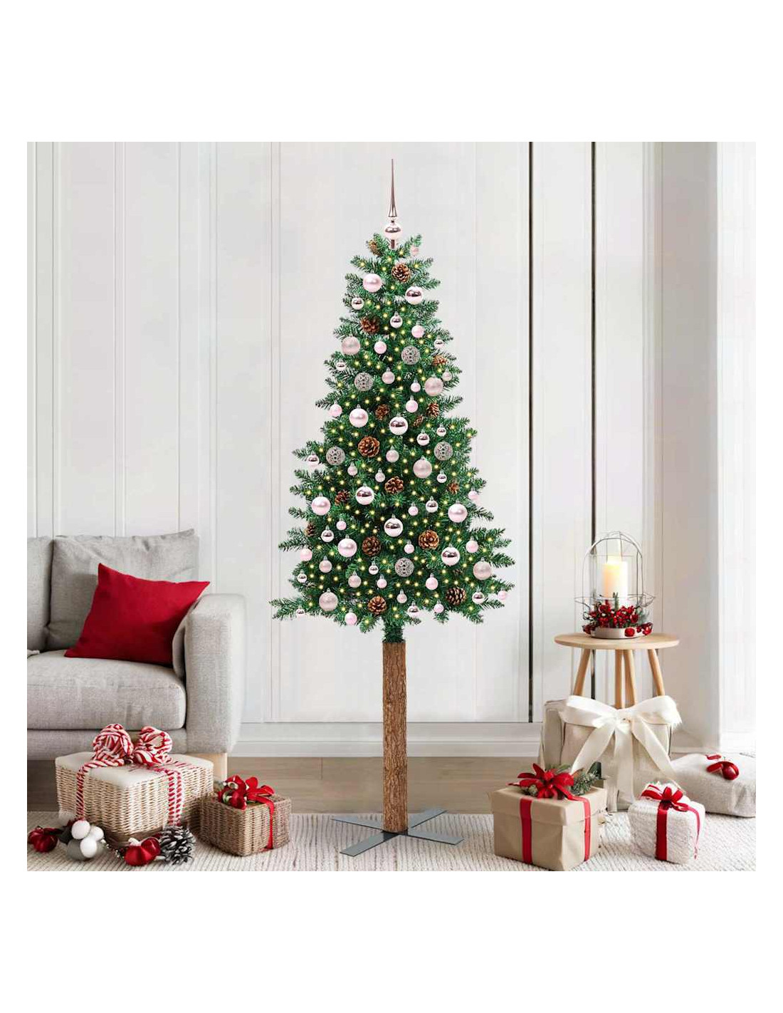 Questo Albero di Natale Slim con Luci LED è un tocco di modernità che si adatta a spazi piccoli e porta lo spirito delle feste ovunque. È pratico e versatile, perfetto sia per interni che esterni, con un design conico che lo rende davvero carino grazie alla sua illuminazione calda.
