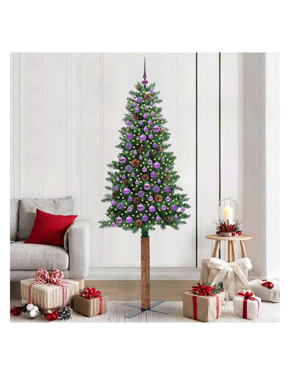 - Decorativo con pigne e palle ornamentali, punte dei rami realistiche, tronco in vero legno