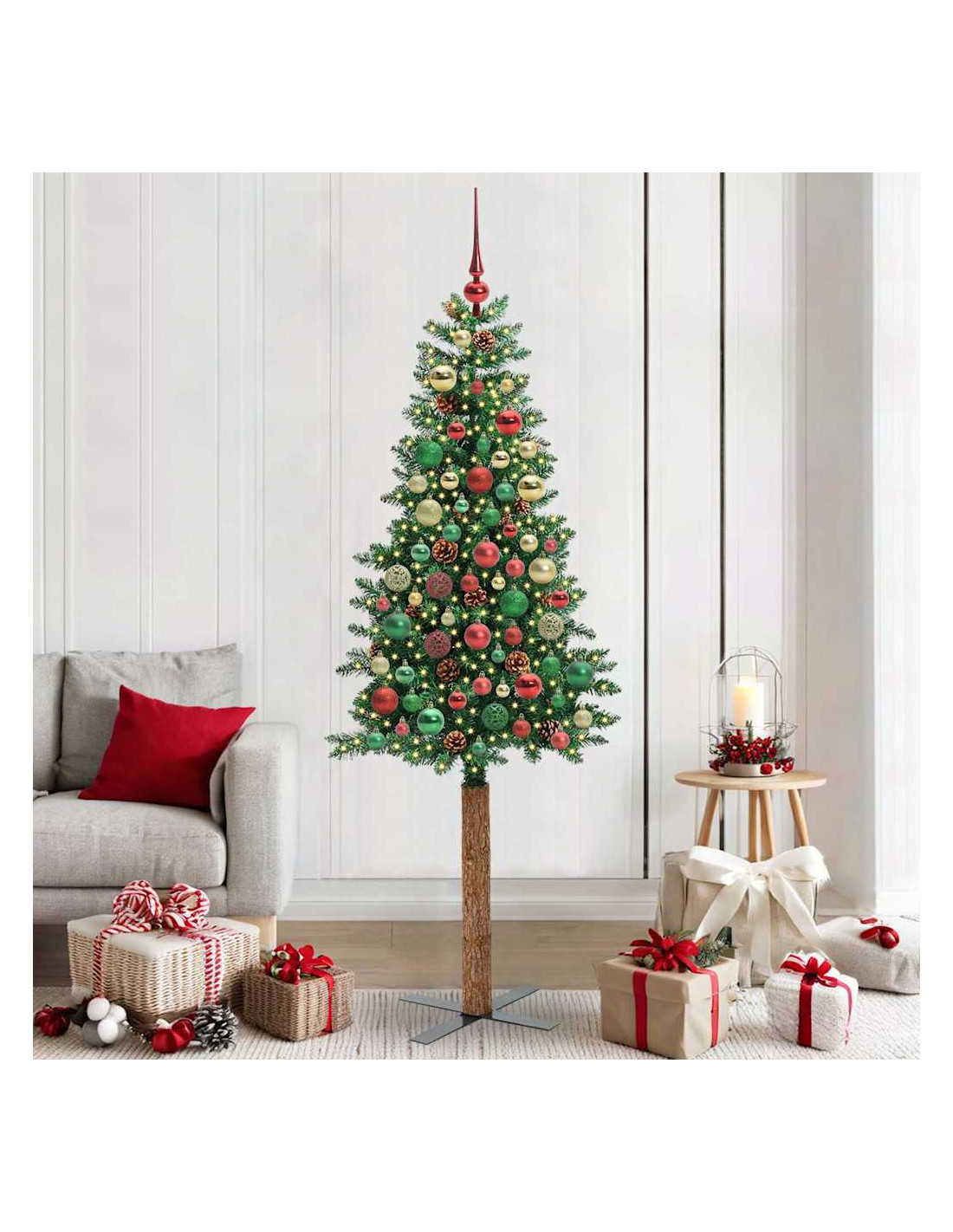 - Decorativo con pigne e palle ornamentali, punte dei rami realistiche, tronco in vero legno