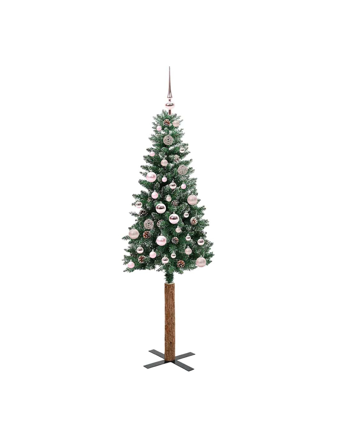- Decorativo con pigne e palline ornamentali, rami realistici con neve fresca, tronco in legno reale