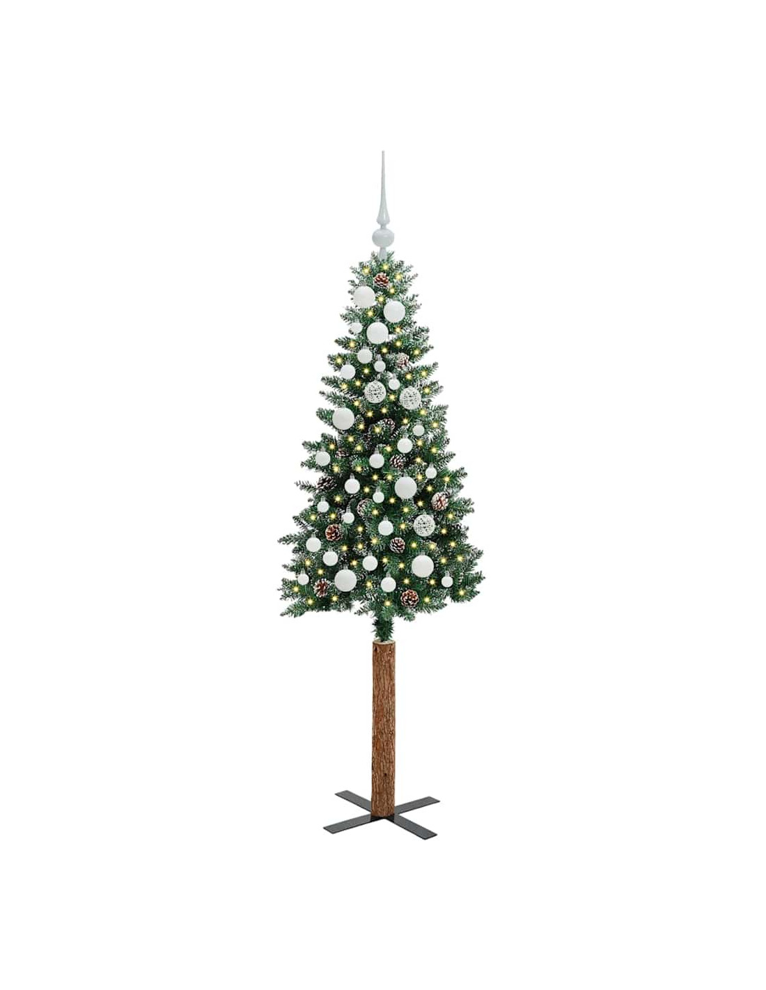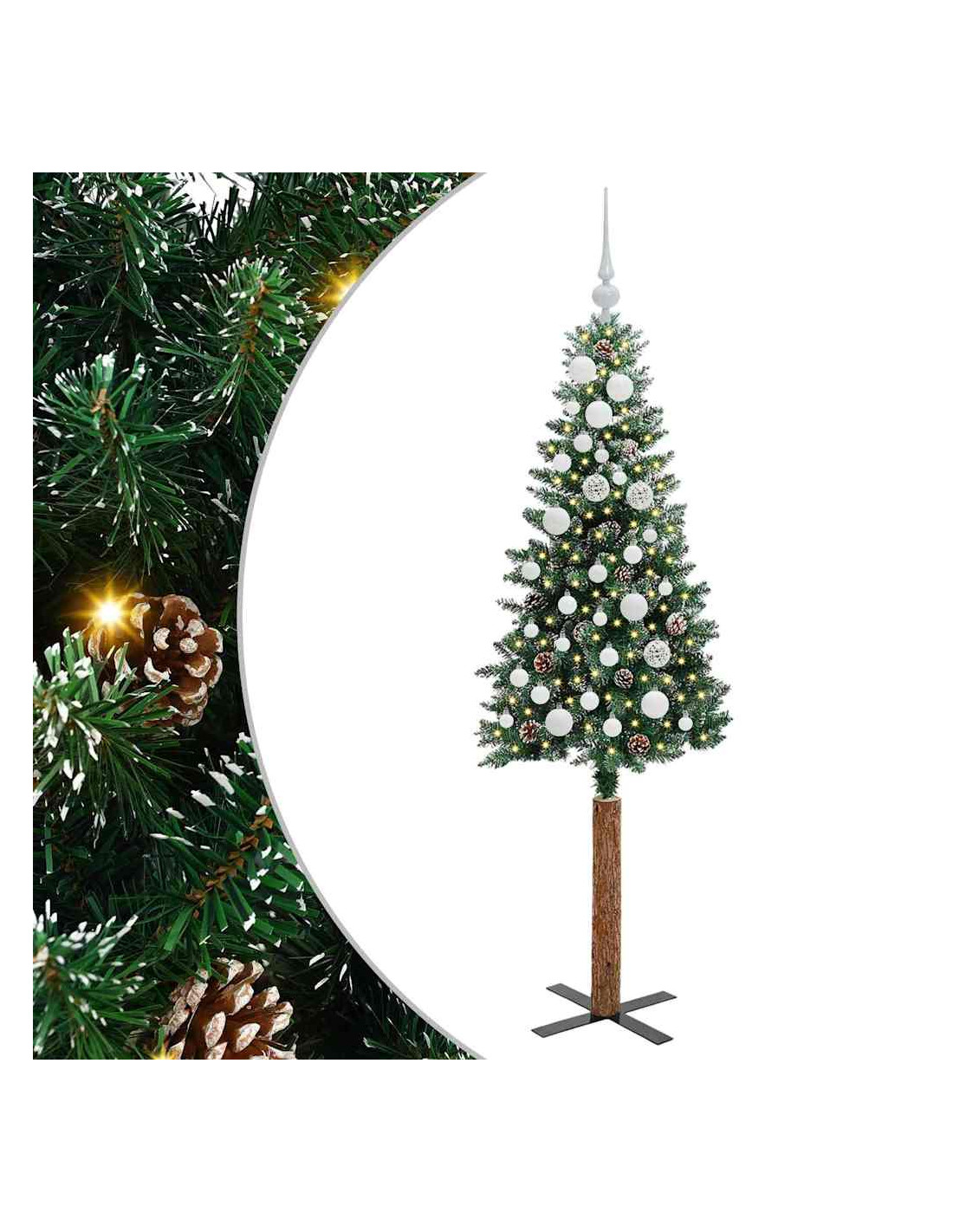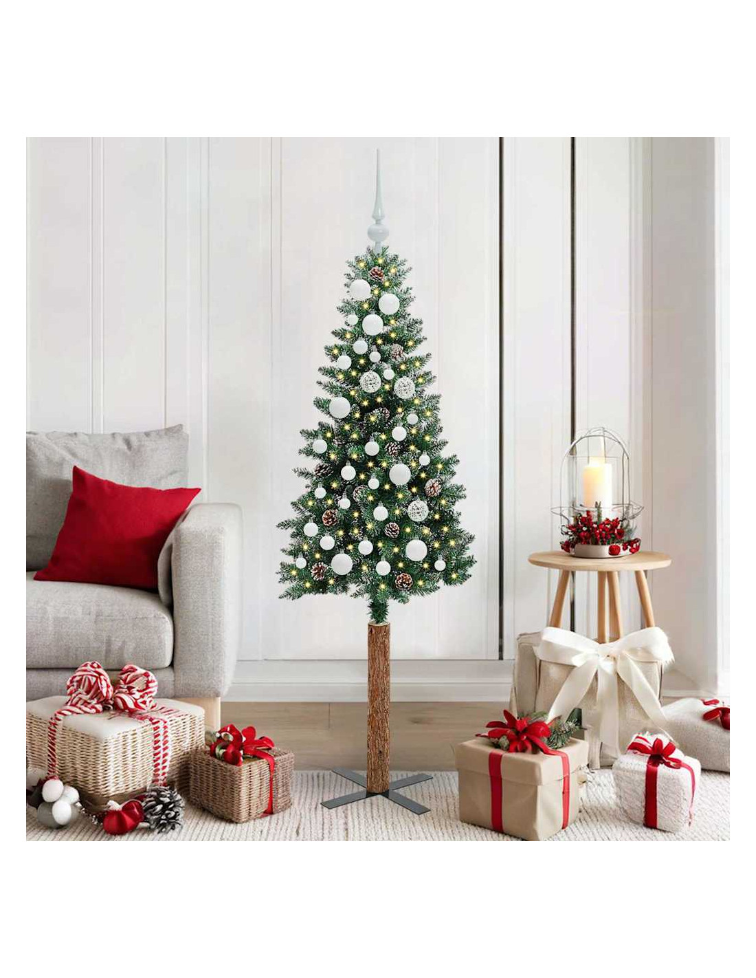 - Decorativo con pigne e palline ornamentali, rami realistici con neve fresca, tronco in legno reale