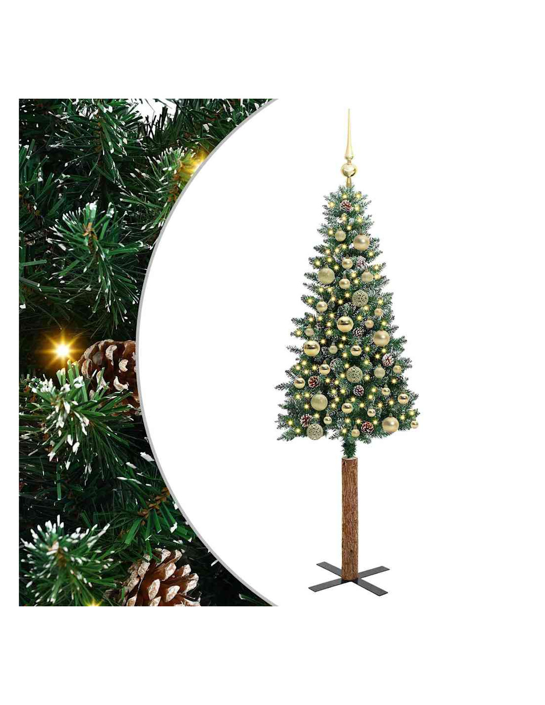 - Decorativo con pigne e palline ornamentali, rami realistici con neve fresca, tronco in legno reale