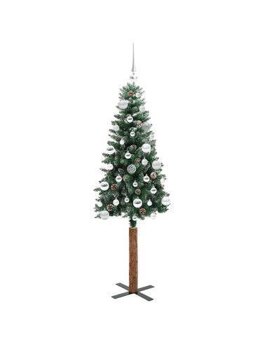 - Decorativo con pigne e palline ornamentali, rami realistici con neve fresca, tronco in legno reale
