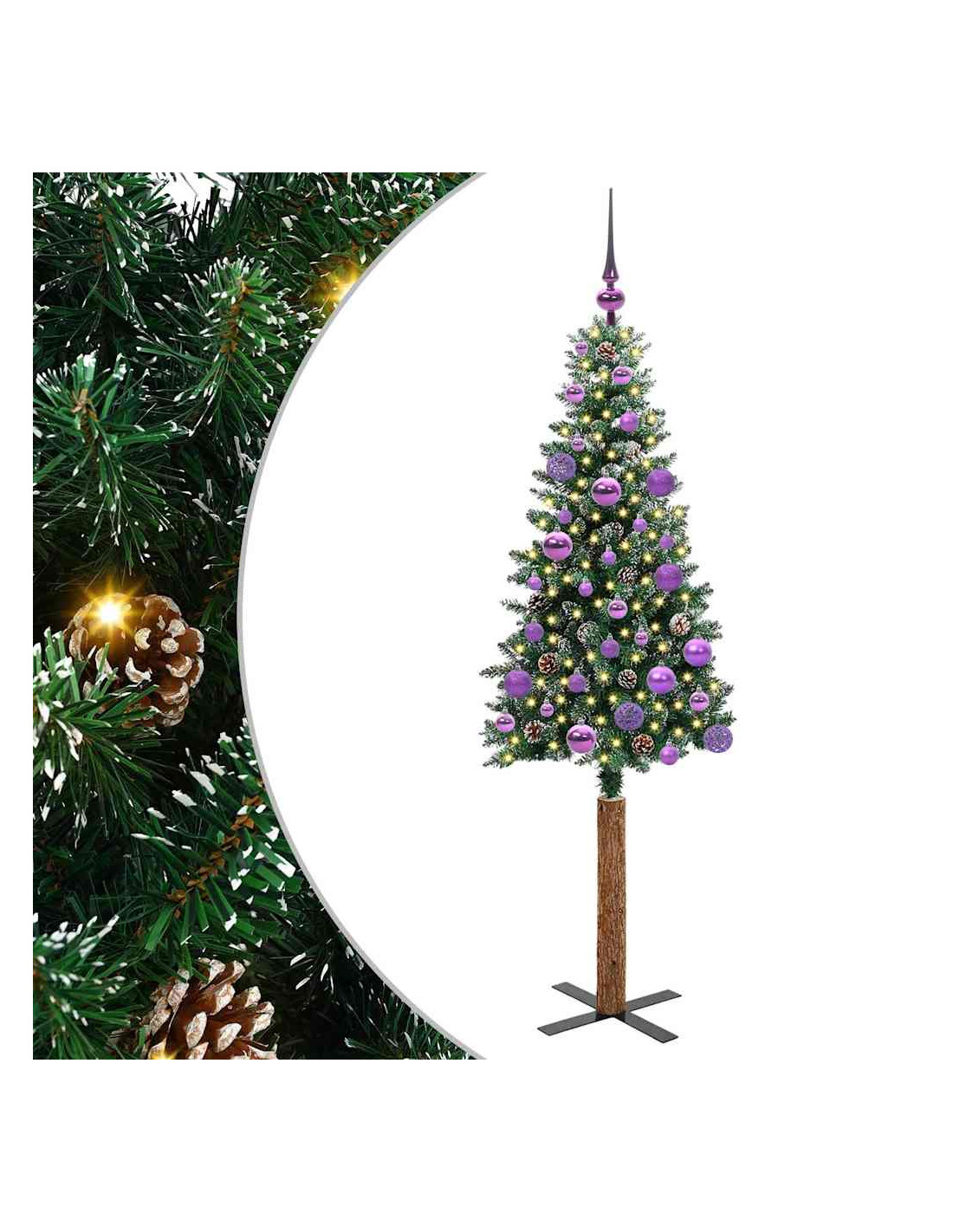- Decorativo con pigne e palline ornamentali, rami realistici con neve fresca, tronco in legno reale