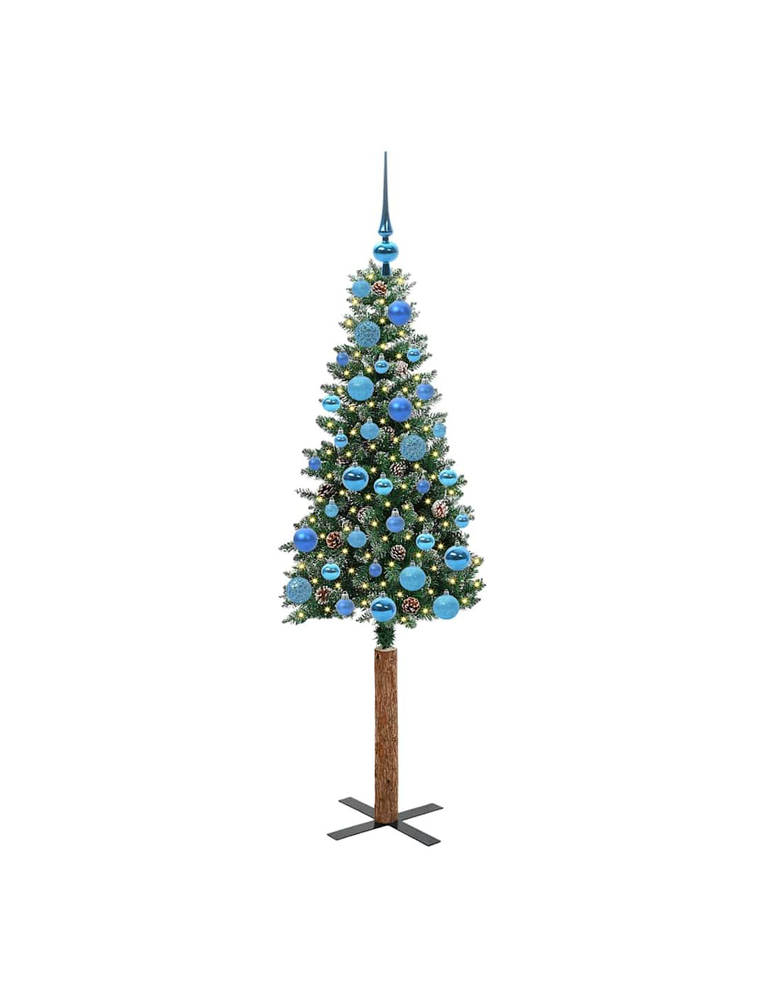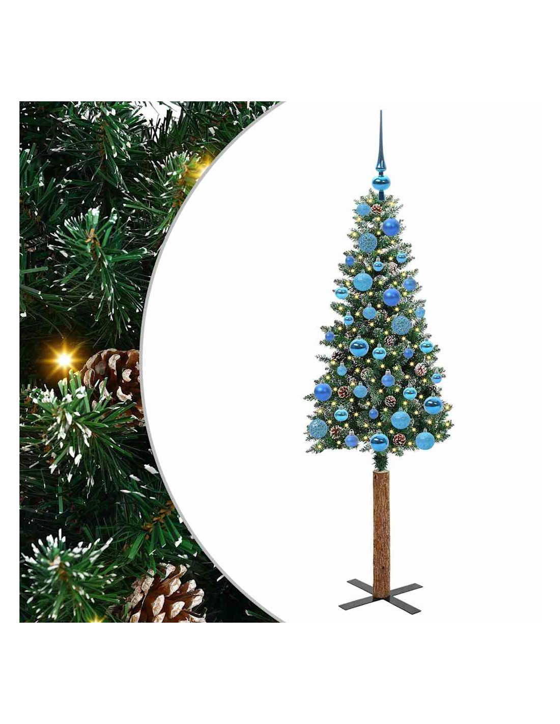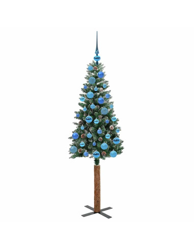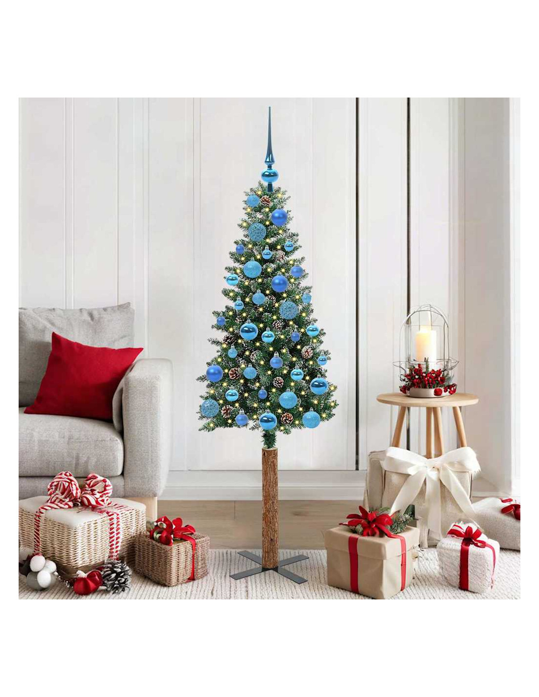 - Decorativo con pigne e palline ornamentali, rami realistici con neve fresca, tronco in legno reale