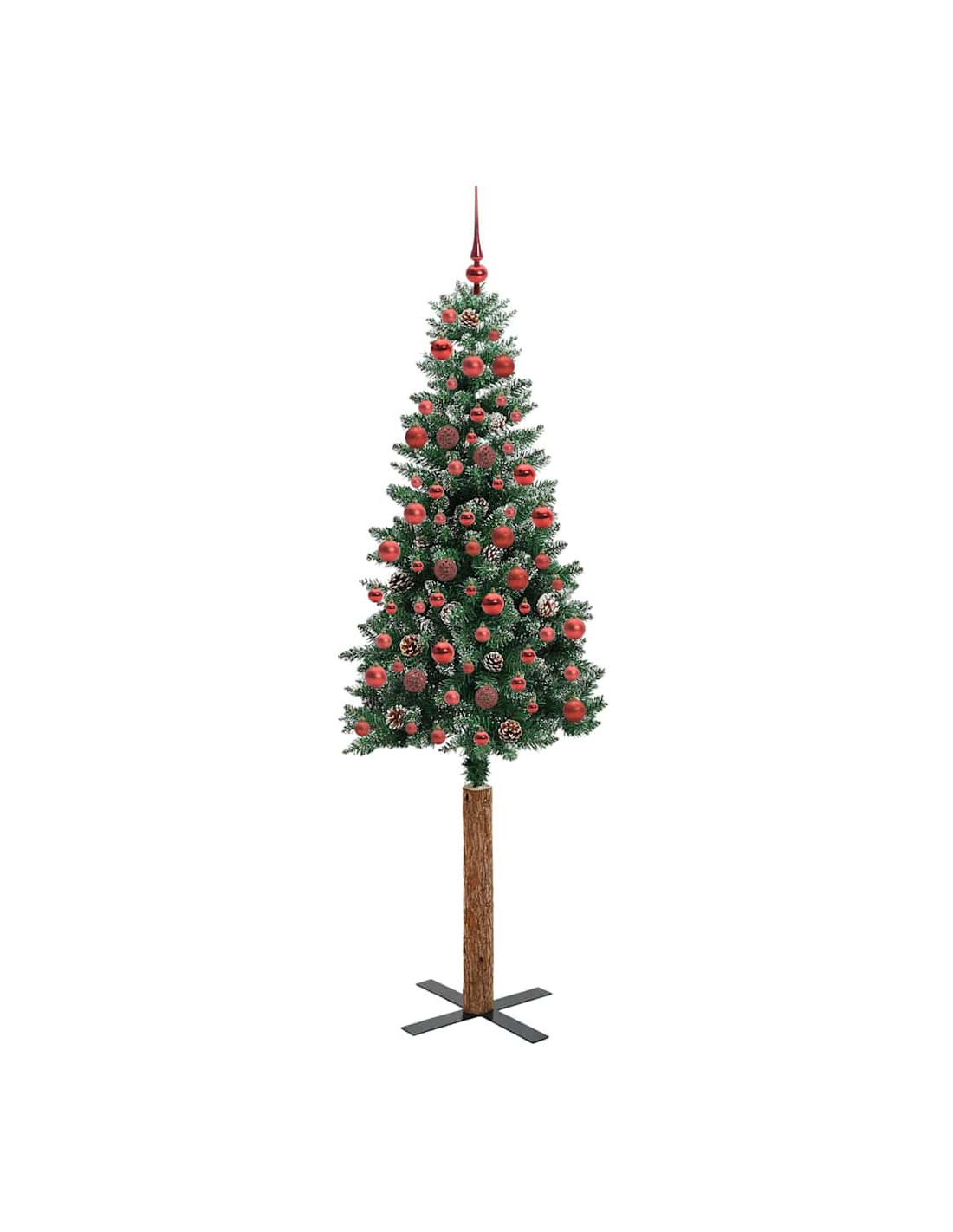 - Decorativo con pigne e palline ornamentali, rami realistici con neve fresca, tronco in legno reale