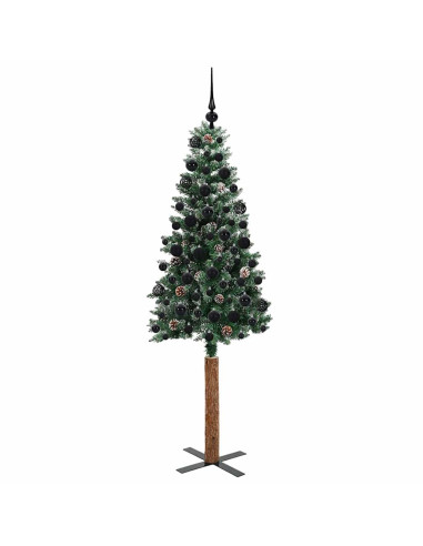 - Decorativo con pigne e palline ornamentali, rami realistici con neve fresca, tronco in legno reale