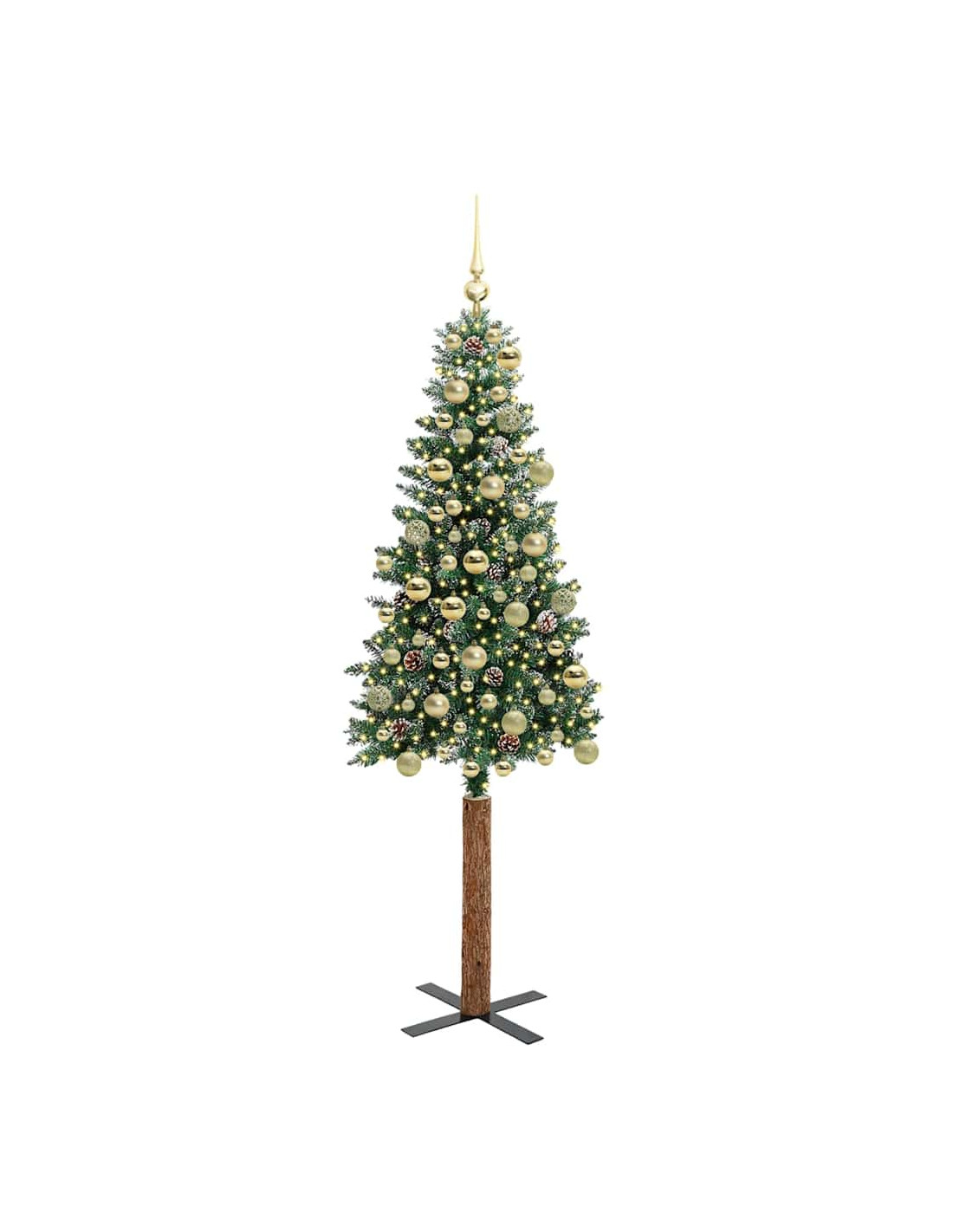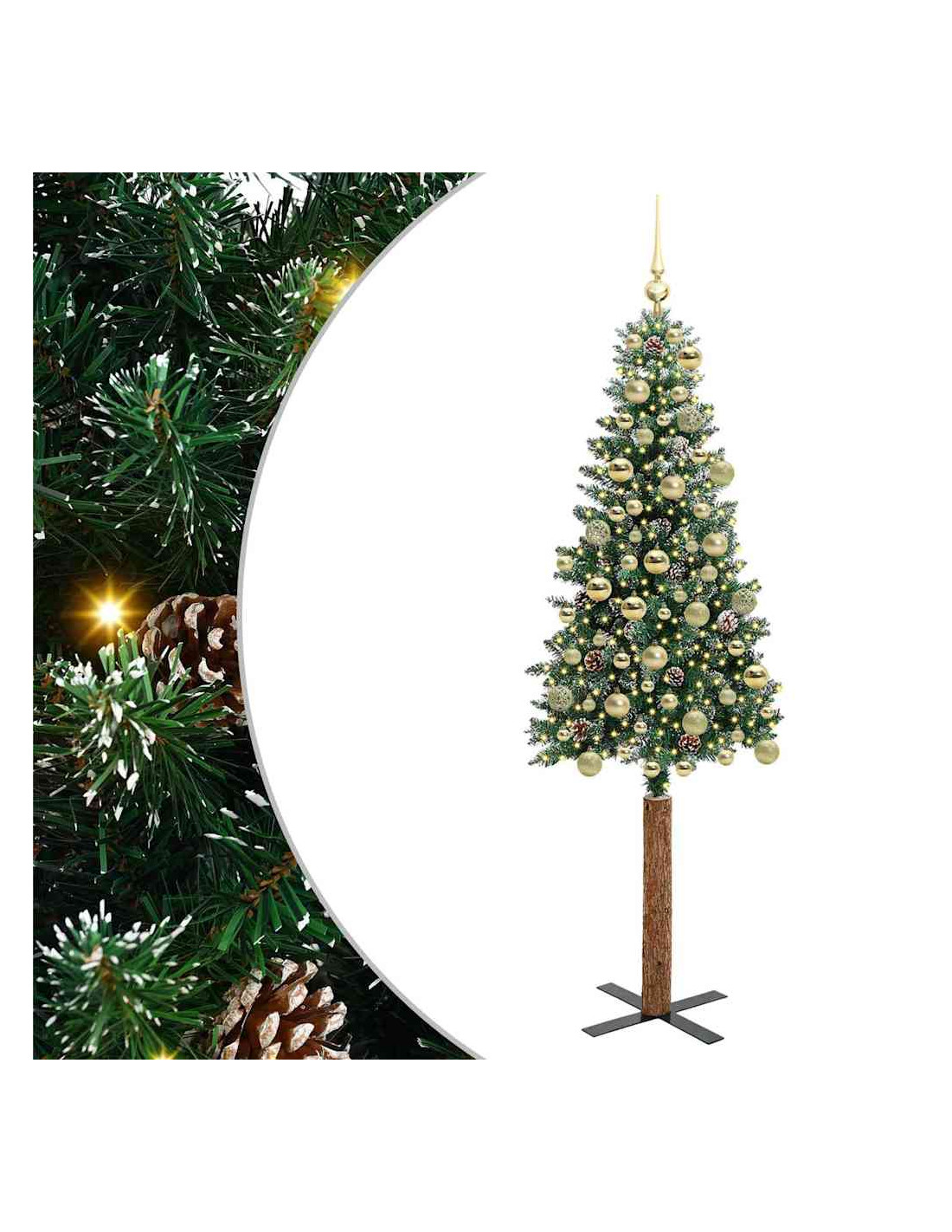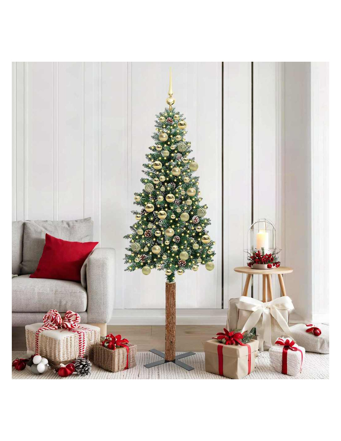 - Decorativo con pigne e palline ornamentali, rami realistici con neve fresca, tronco in legno reale