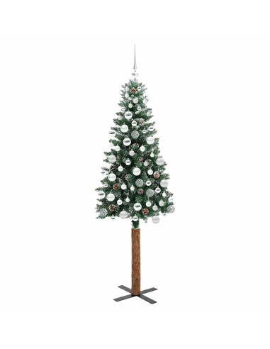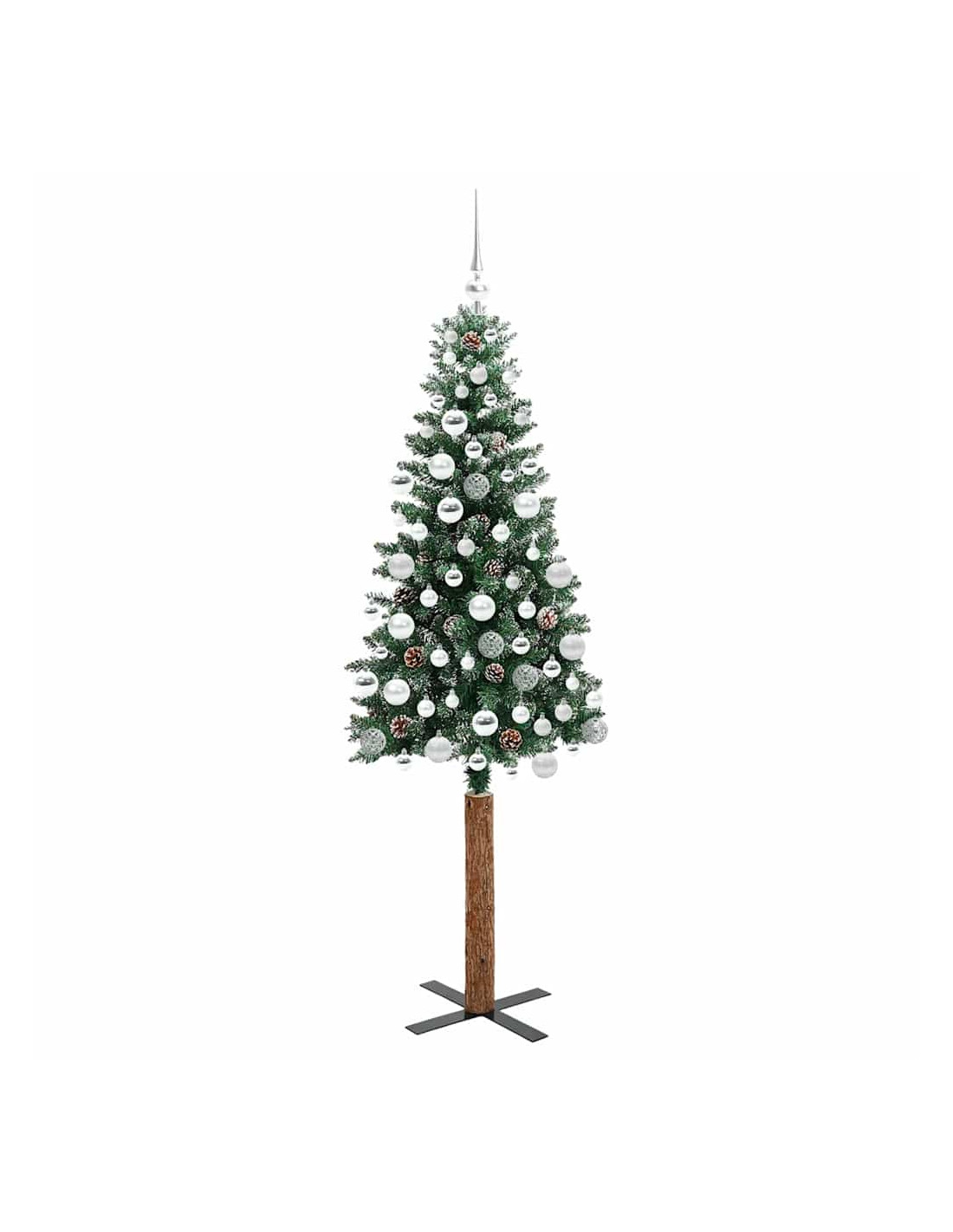 - Decorativo con pigne e palline ornamentali, rami realistici con neve fresca, tronco in legno reale
