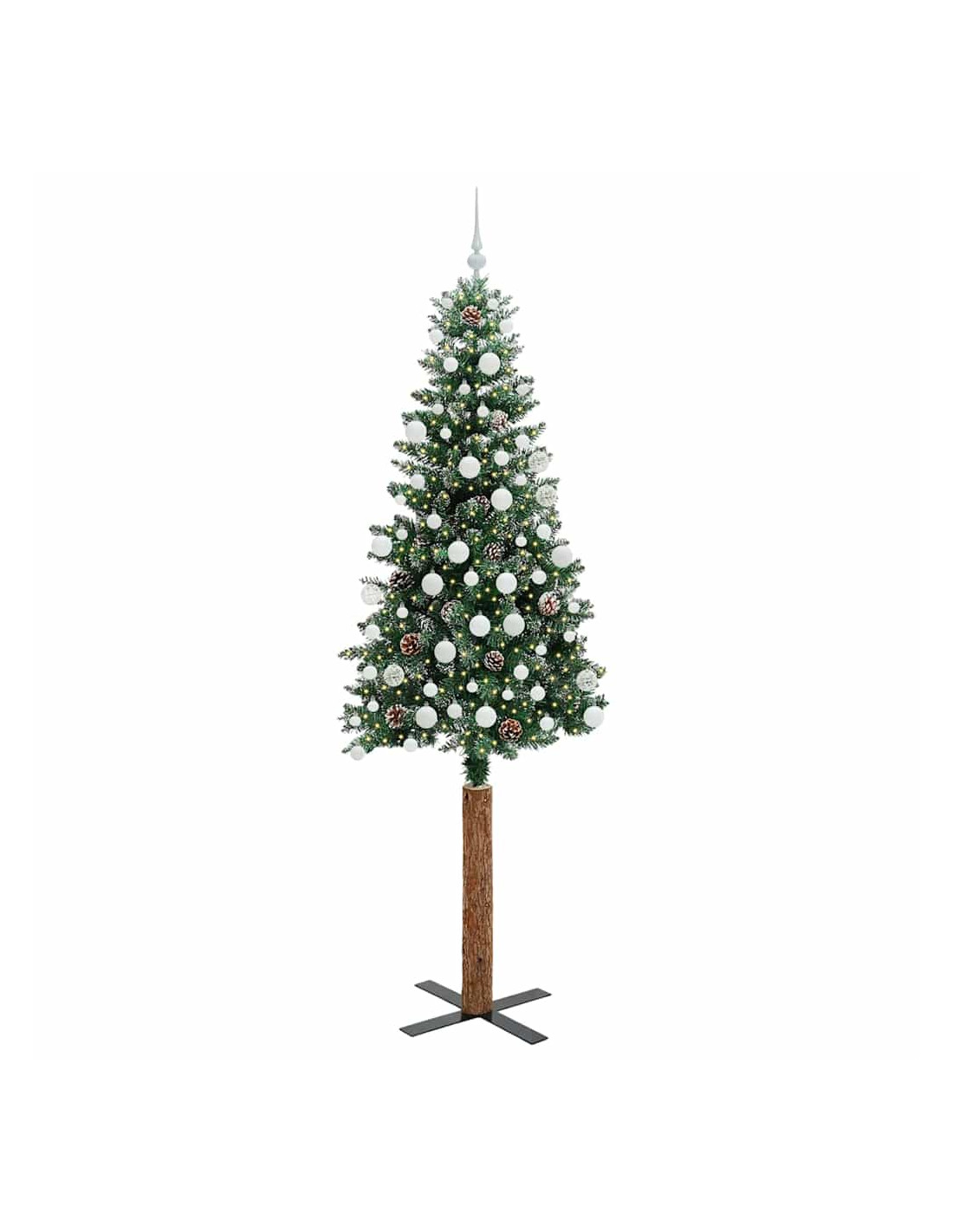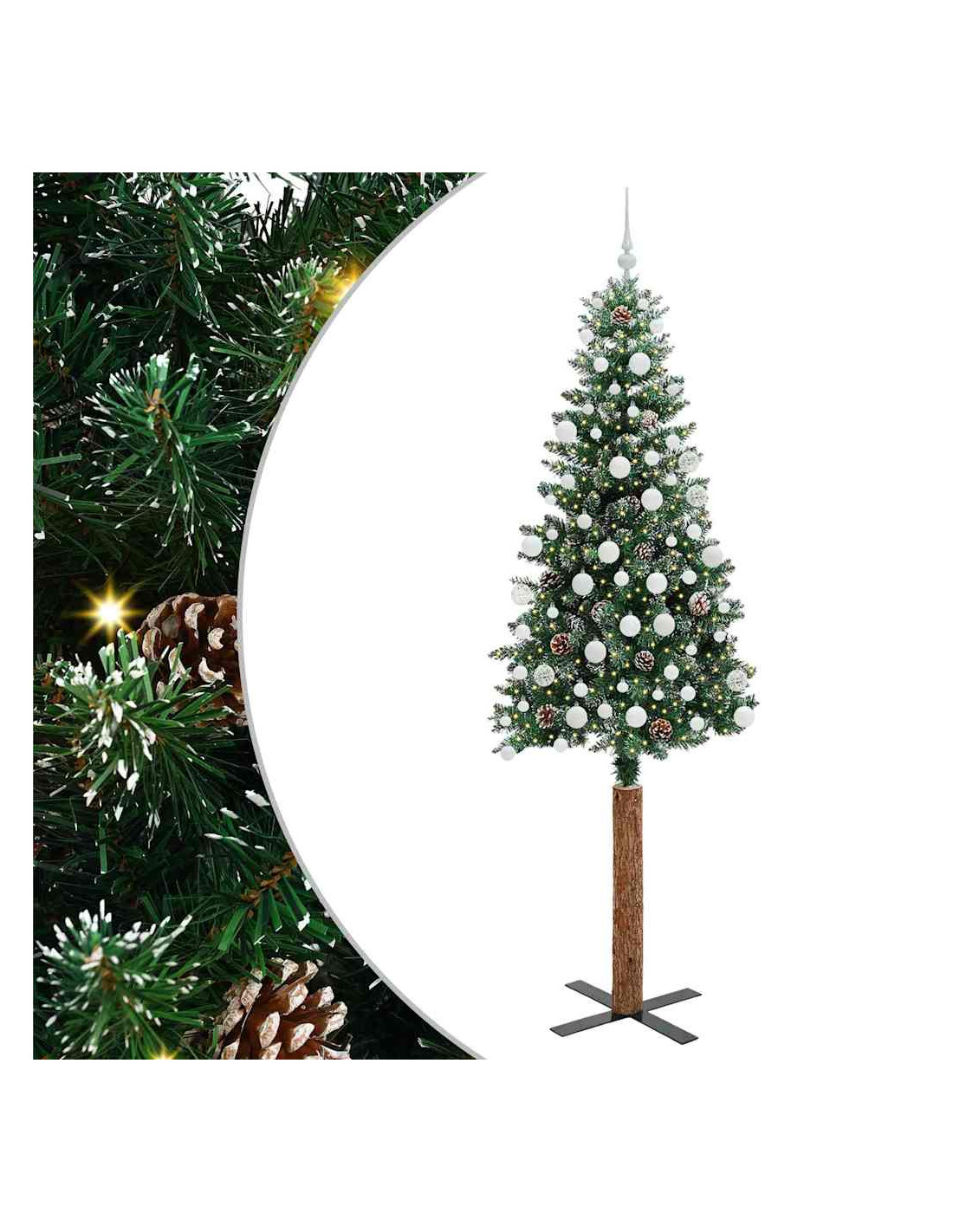 - Decorativo con pigne e palline ornamentali, rami realistici con neve fresca, tronco in legno reale