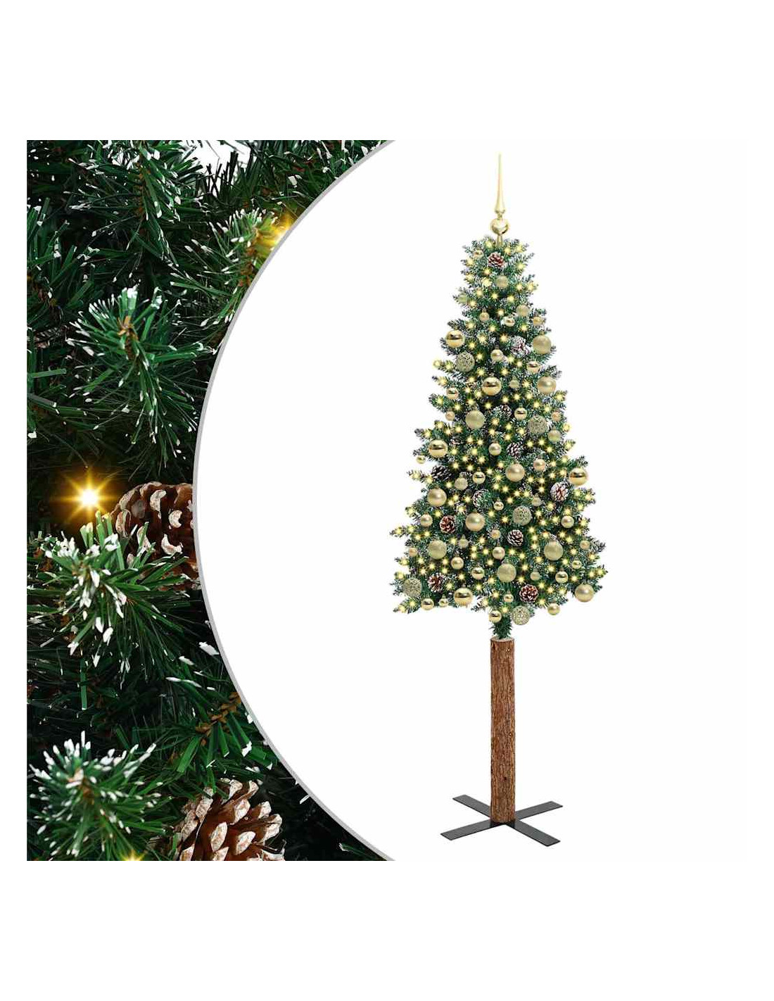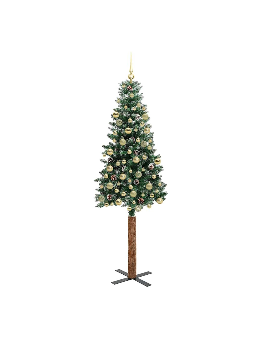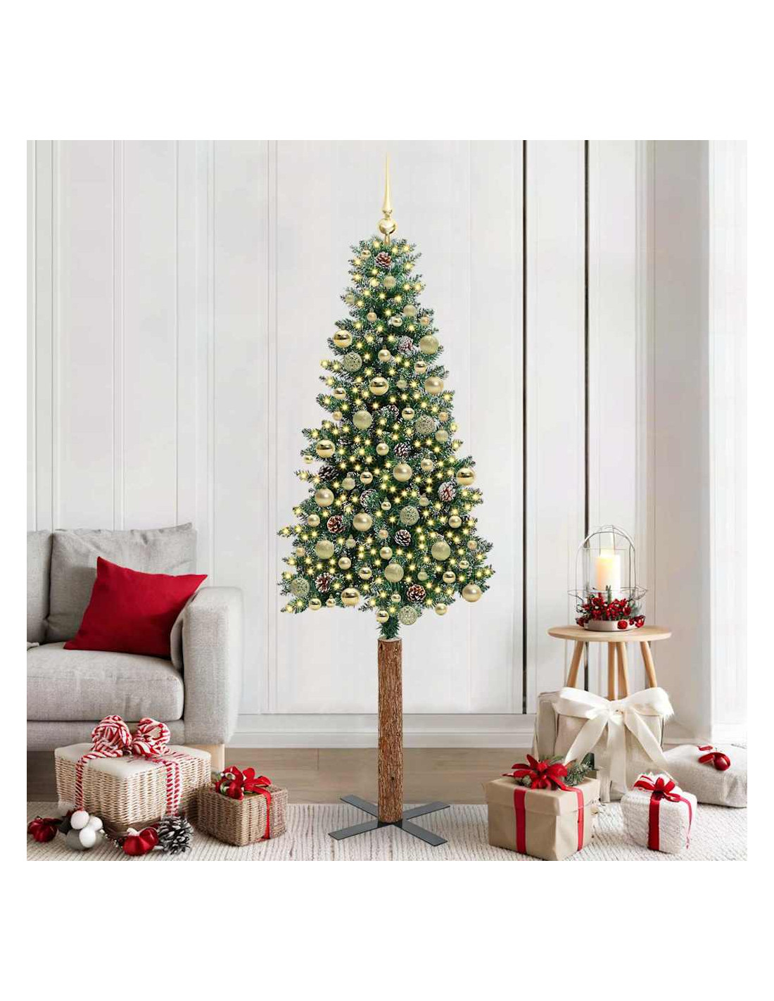 - Decorativo con pigne e palline ornamentali, rami realistici con neve fresca, tronco in legno reale
