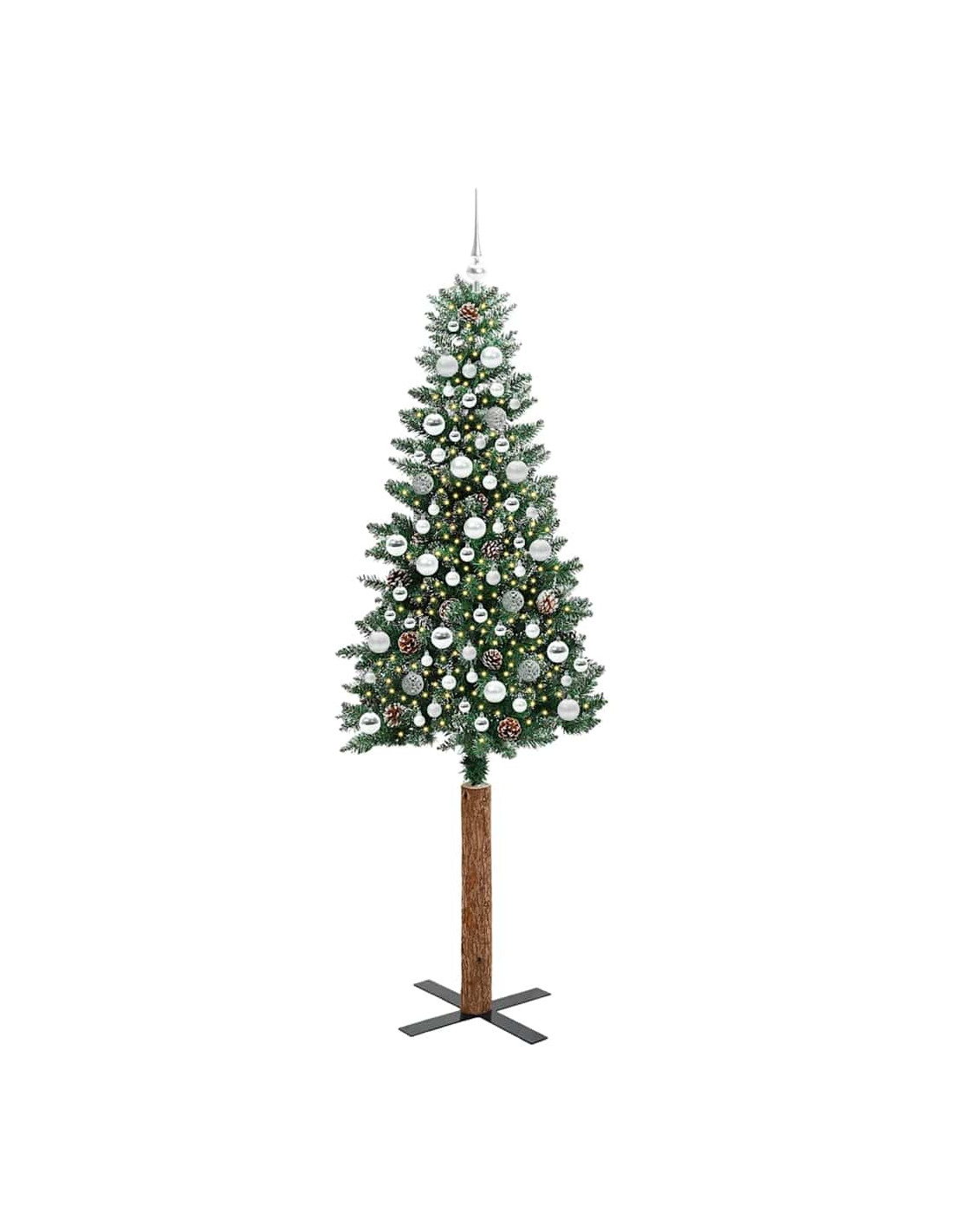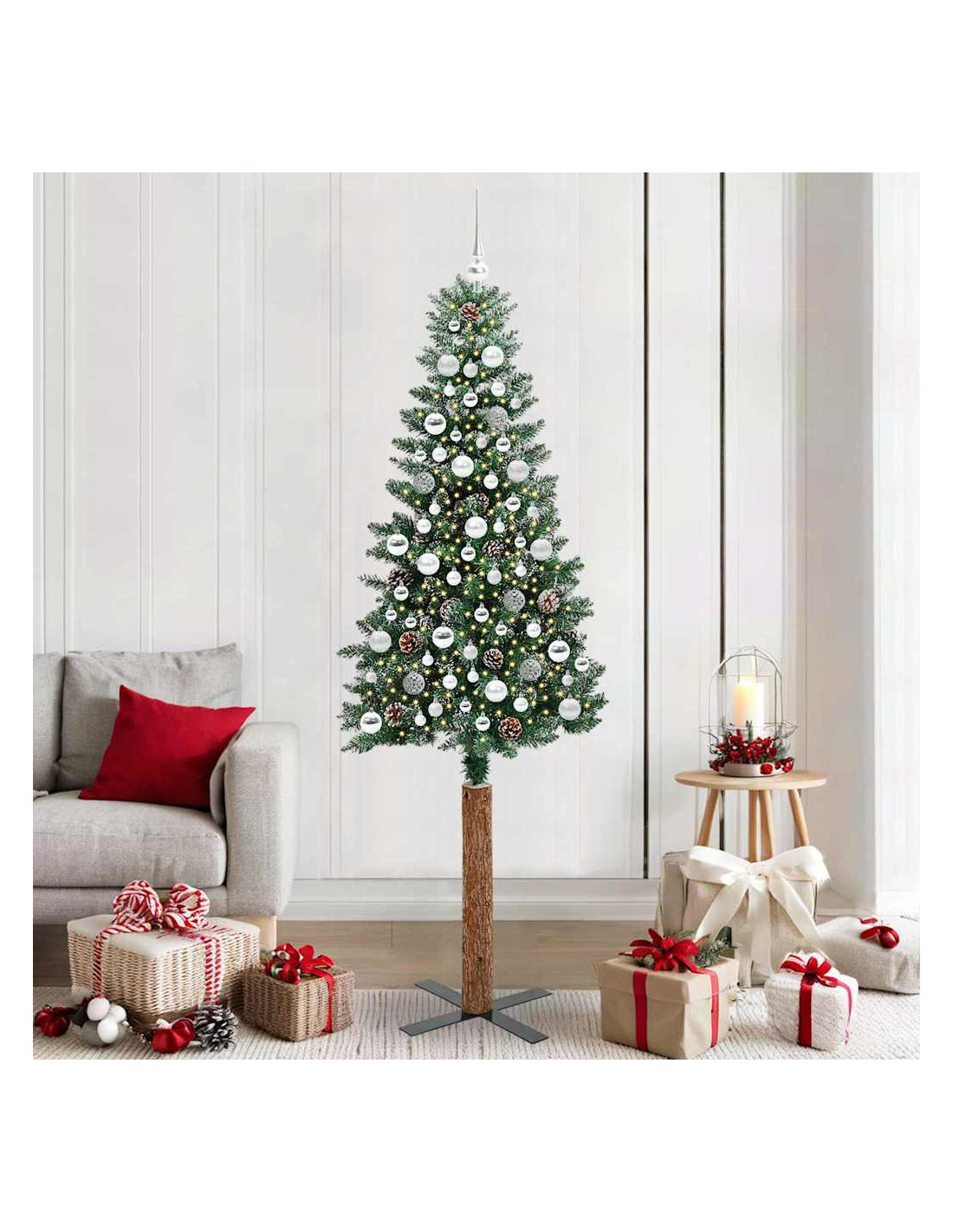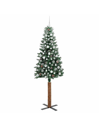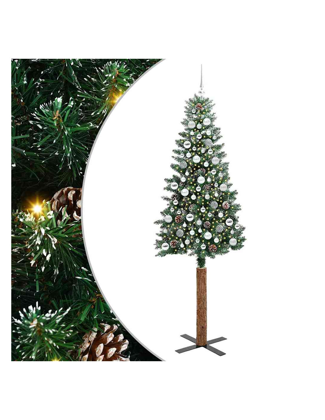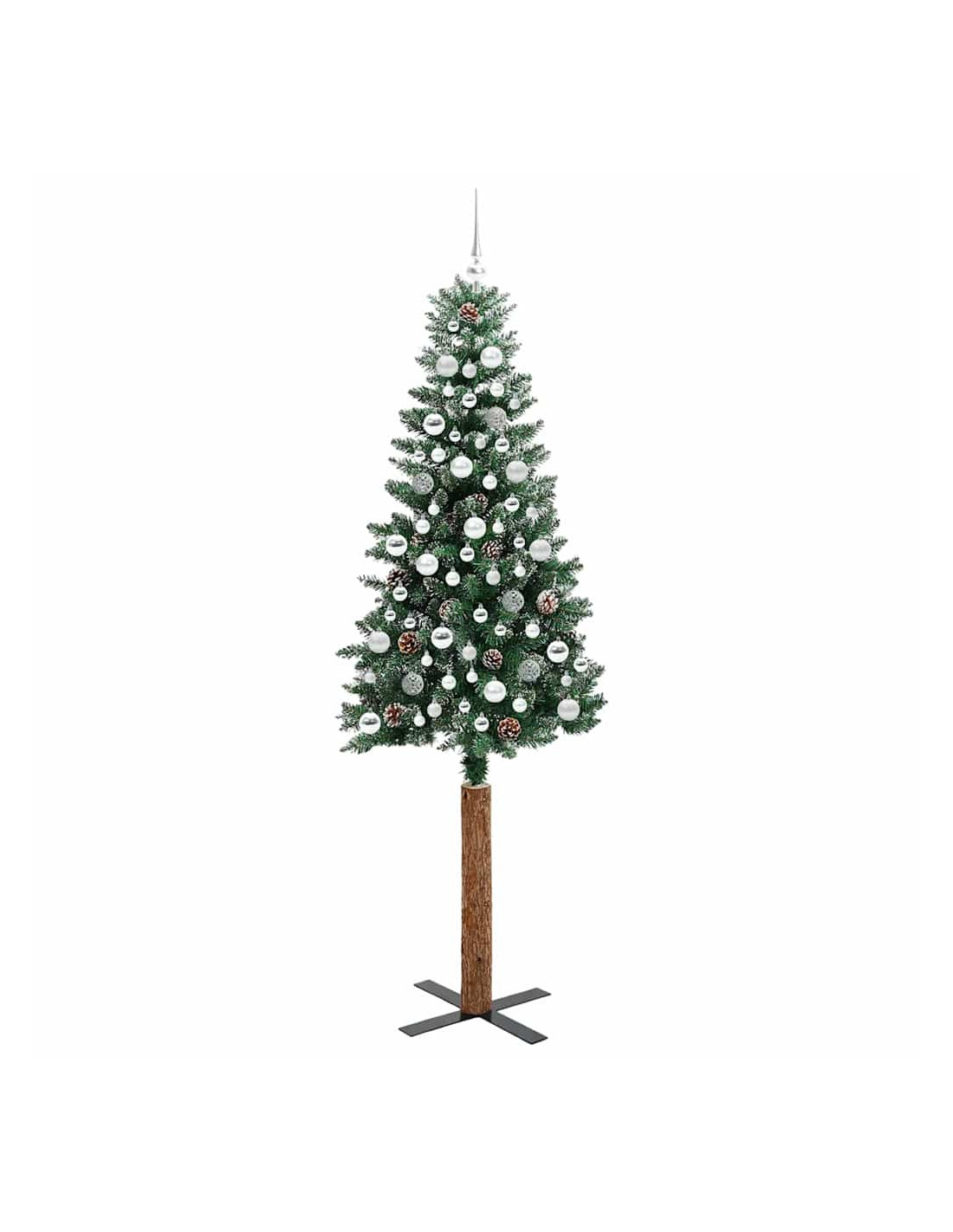- Decorativo con pigne e palline ornamentali, rami realistici con neve fresca, tronco in legno reale