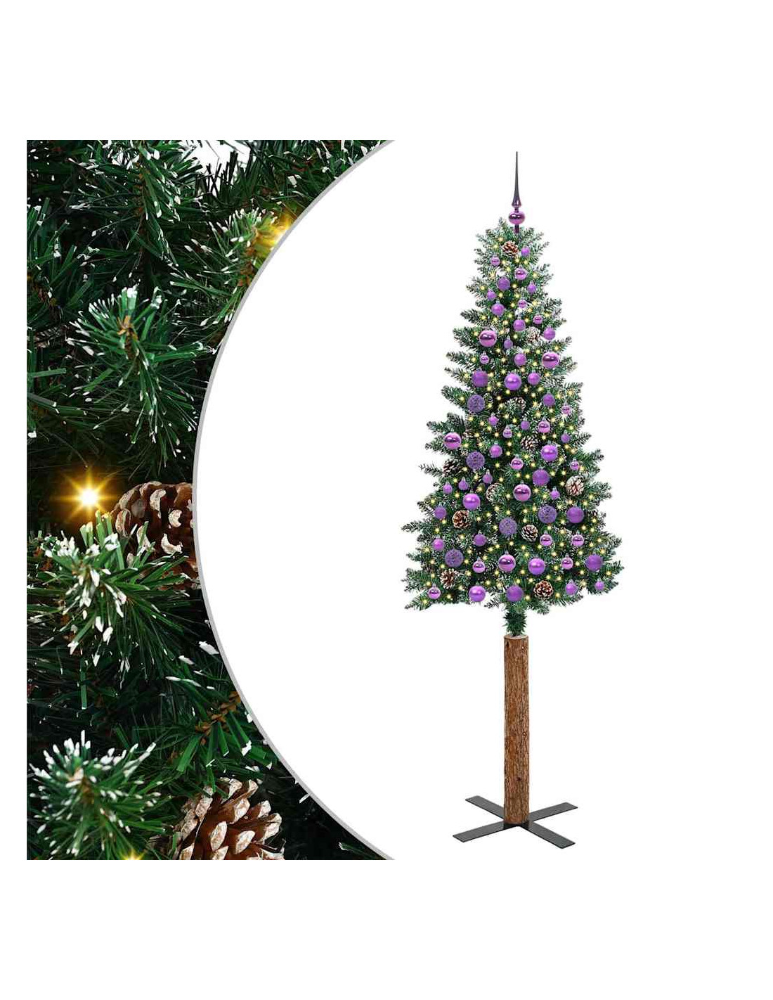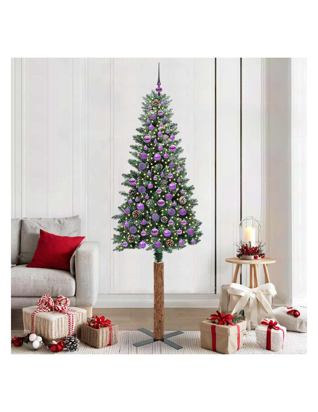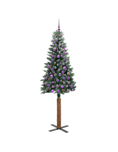 - Decorativo con pigne e palline ornamentali, rami realistici con neve fresca, tronco in legno reale