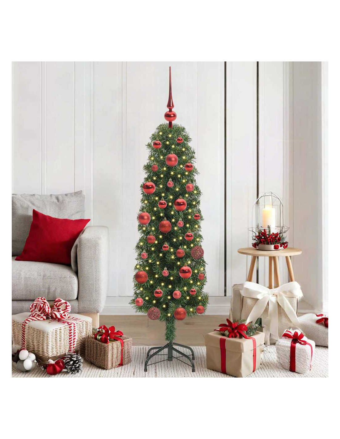 Questo Albero di Natale Slim Moderno aggiunge un tocco di classe a qualsiasi festa, sia in casa che in giardino. Con il suo design chic e semplice, è perfetto per gli amanti del decor moderno. Alto e snello, fa un bell'effetto ovunque, dai salotti ai giardini, ed è sicuramente il protagonista delle tue feste.
