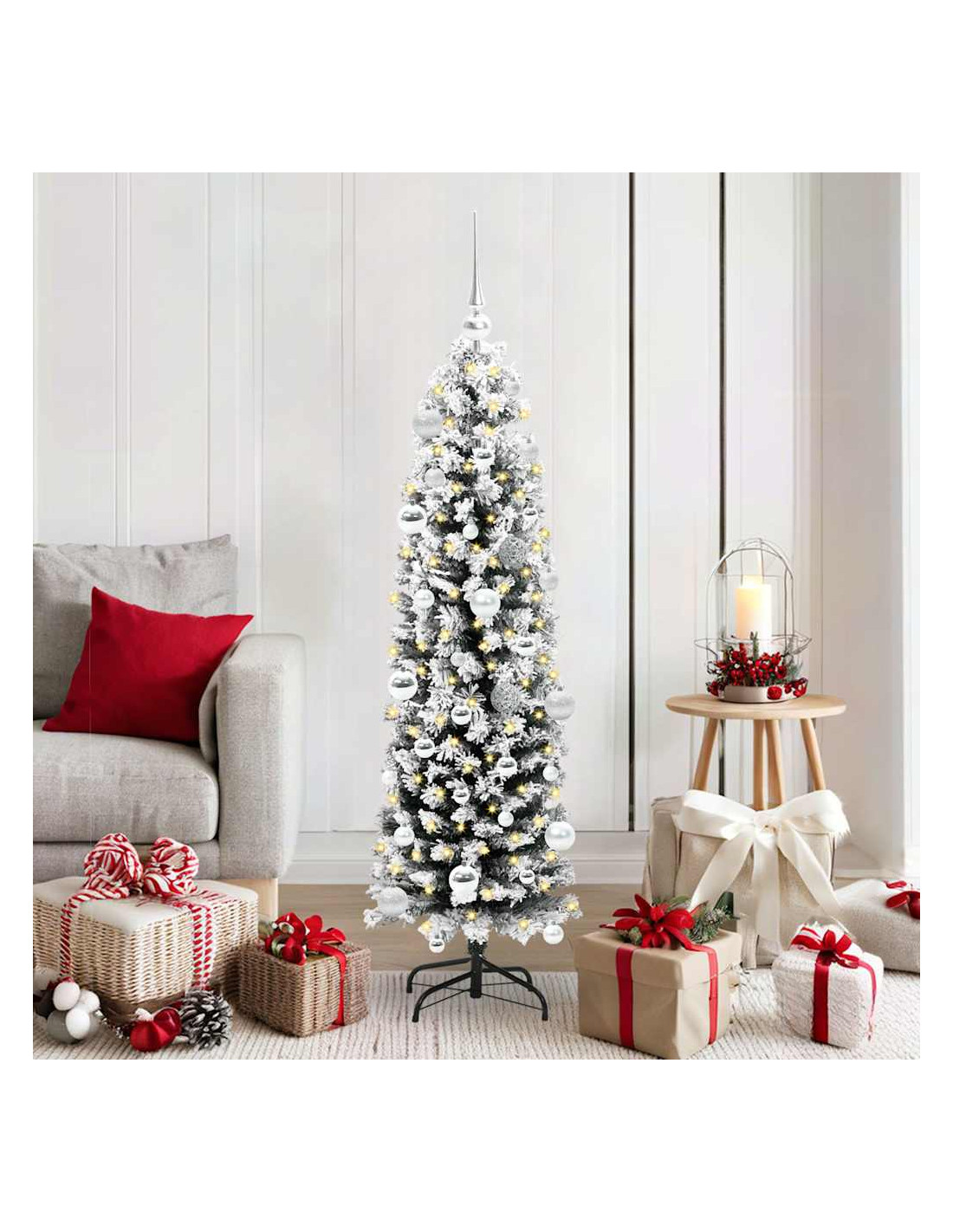 Questo Albero di Natale Slim Moderno aggiunge un tocco di classe a qualsiasi festa, sia in casa che in giardino. Con il suo design chic e semplice, è perfetto per gli amanti del decor moderno. Alto e snello, fa un bell'effetto ovunque, dai salotti ai giardini, ed è sicuramente il protagonista delle tue feste.