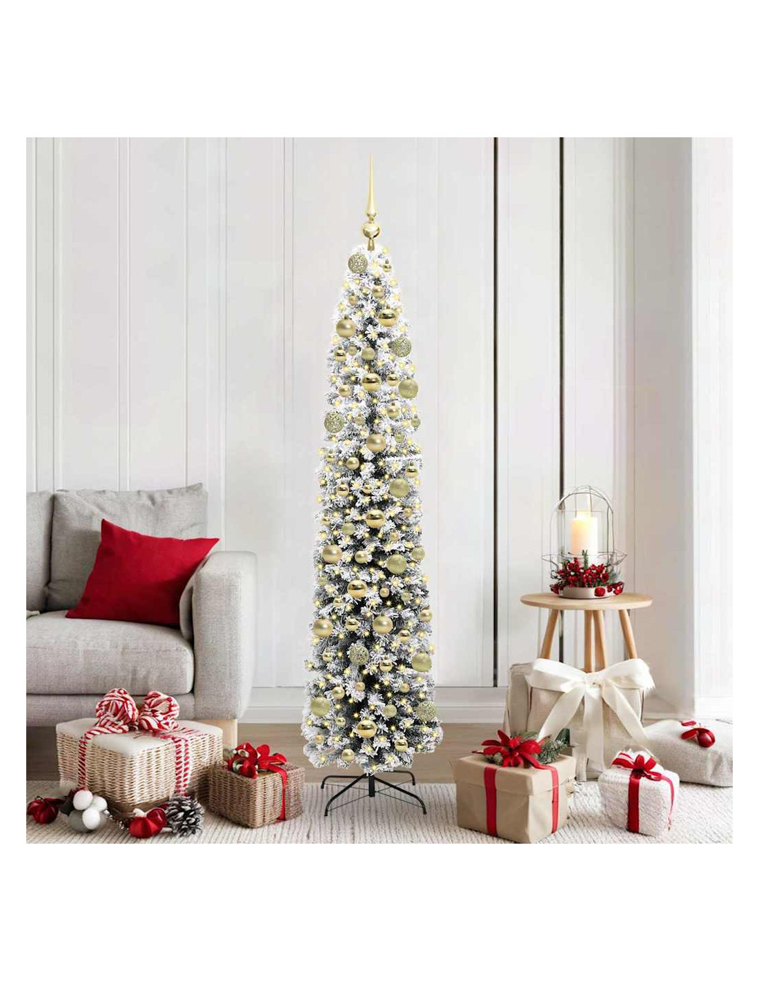 Questo Albero di Natale Slim Moderno aggiunge un tocco di classe a qualsiasi festa, sia in casa che in giardino. Con il suo design chic e semplice, è perfetto per gli amanti del decor moderno. Alto e snello, fa un bell'effetto ovunque, dai salotti ai giardini, ed è sicuramente il protagonista delle tue feste.