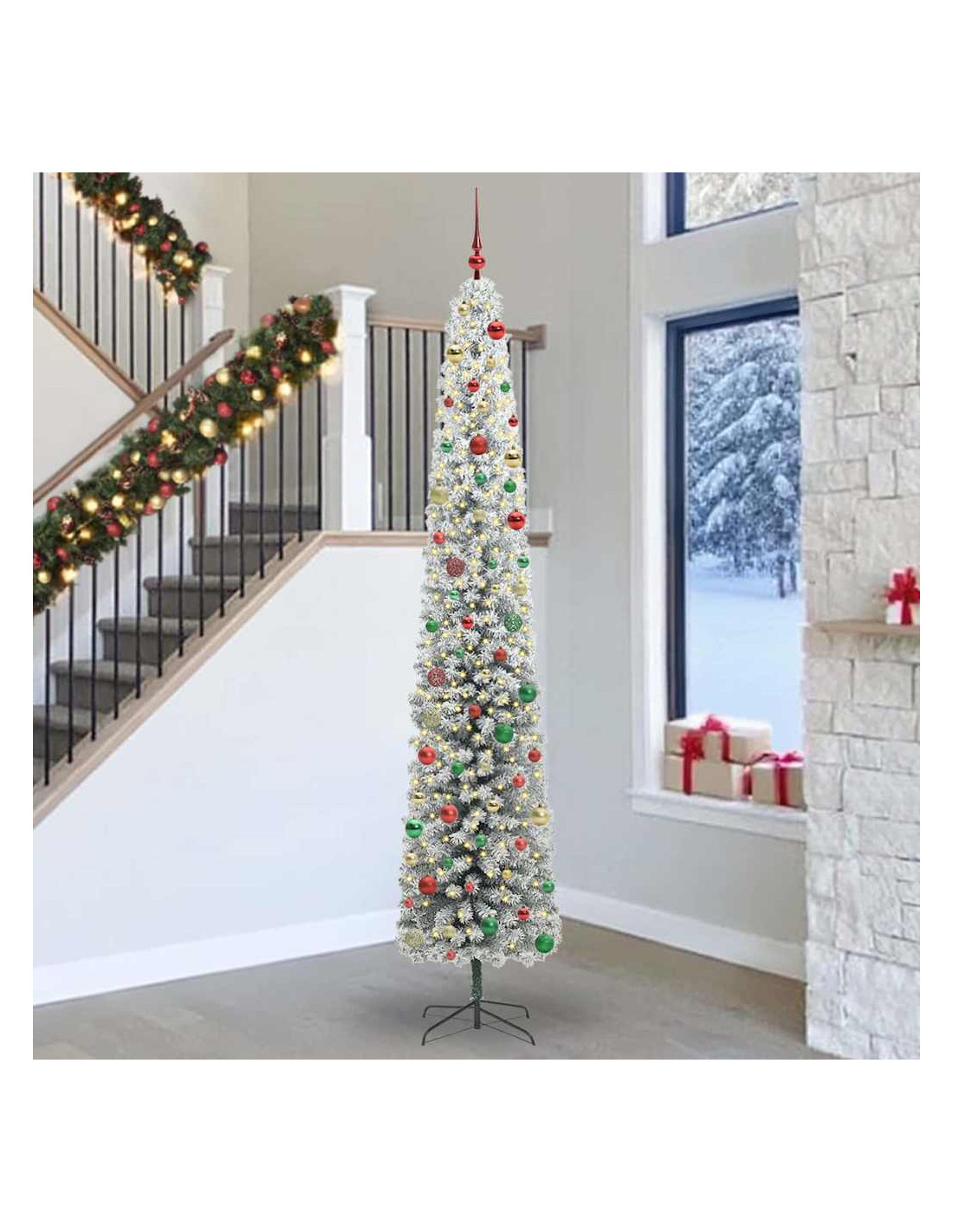 Questo Albero di Natale Slim Moderno aggiunge un tocco di classe a qualsiasi festa, sia in casa che in giardino. Con il suo design chic e semplice, è perfetto per gli amanti del decor moderno. Alto e snello, fa un bell'effetto ovunque, dai salotti ai giardini, ed è sicuramente il protagonista delle tue feste.